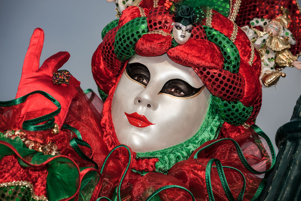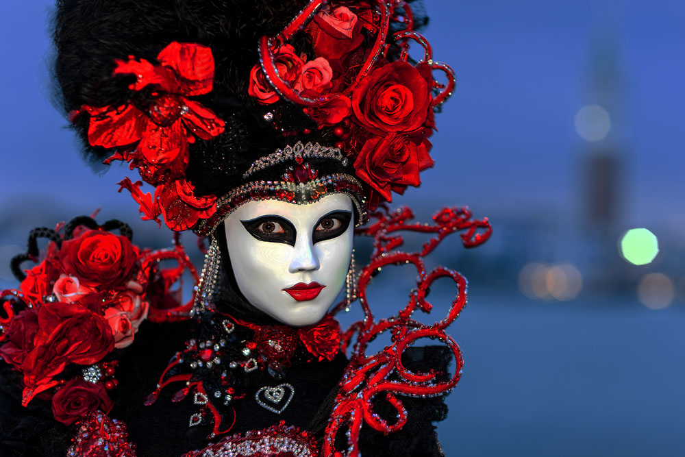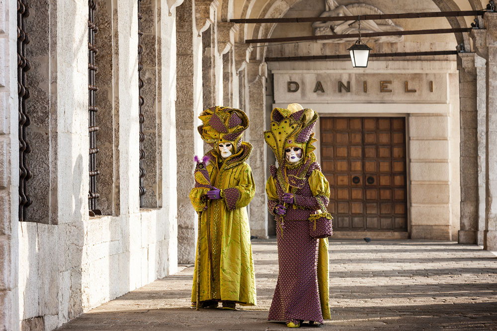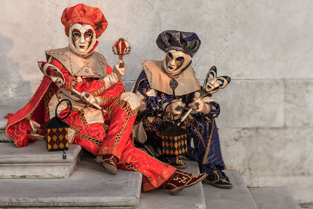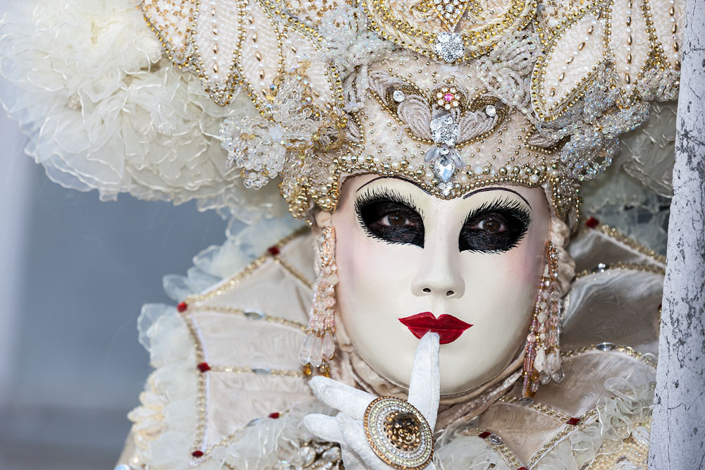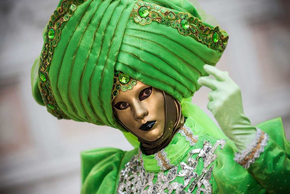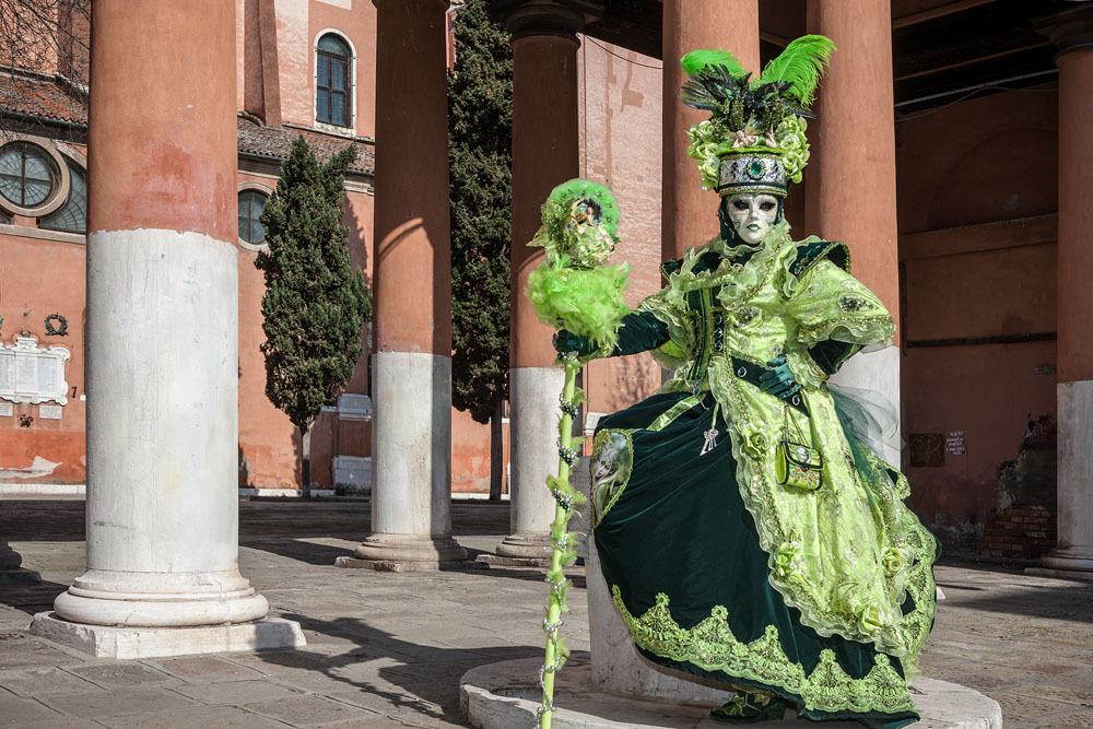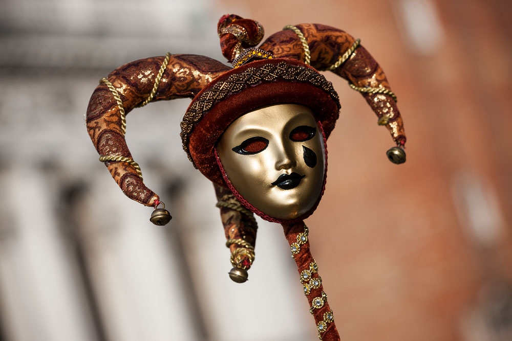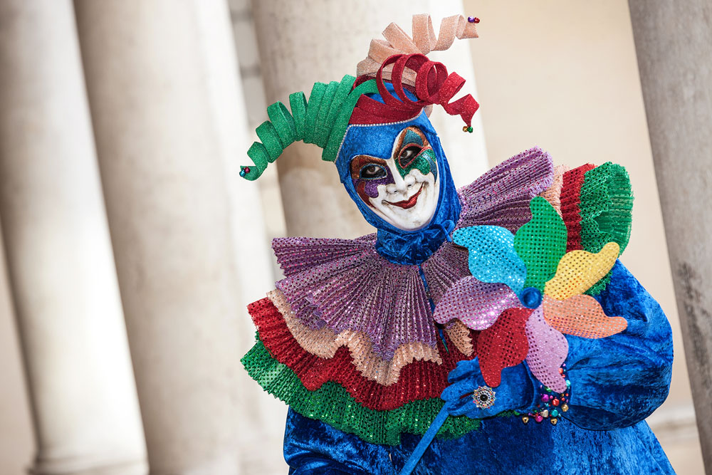 Morgens, wenn einem die Luft kühl und feucht umhüllt und es ganz still ist, nur das Geräusch des Besens eines Straßenkehrers über das Pflaster des Markusplatzes streicht, stehe ich gerne am Ufer der Riva degli Schiavoni und schaue hinüber nach San Giorgio di Maggiore oder Santa Maria della Salute. Zu dieser frühen Stunde beginnt der Zauber von Venedig, wird es zur Kulisse wie in einem Film Fellinis oder zum „Schönsten Ballsaal der Welt“, wie Napoleon gesagt haben soll. Auf dieser Bühne wird alljährlich an den „12 tollen Tagen“, einer Oper von Goldoni gleich, der Carnevale di Venezia gegeben.