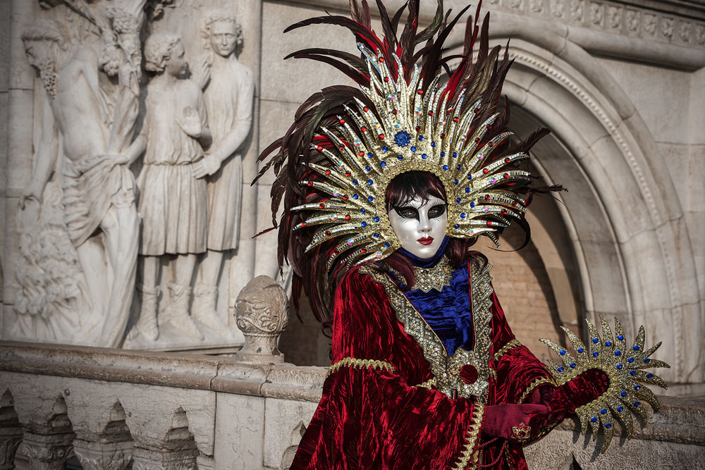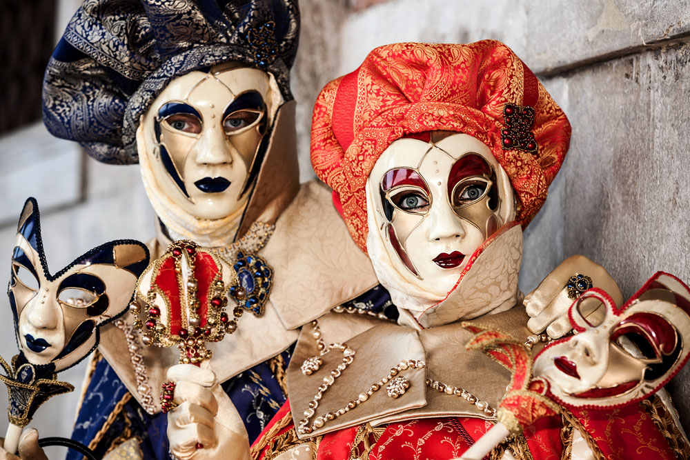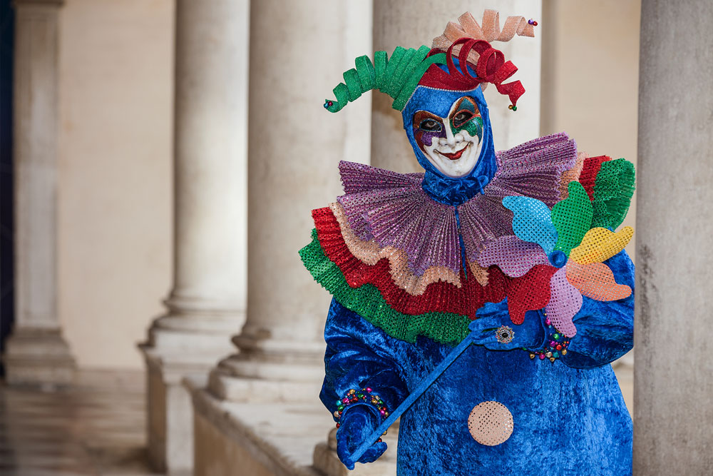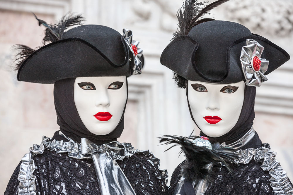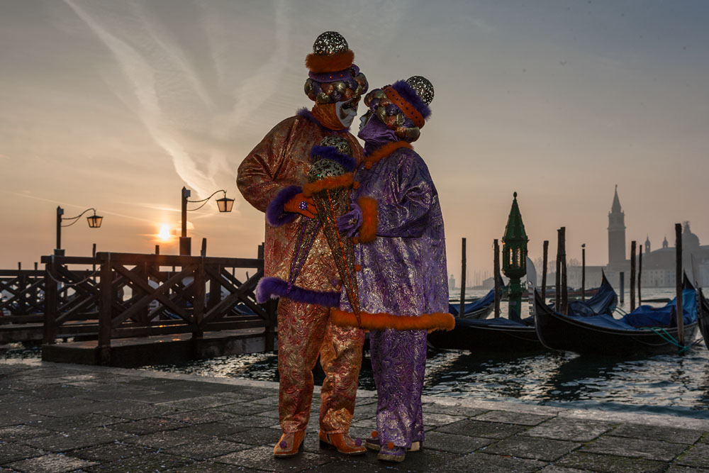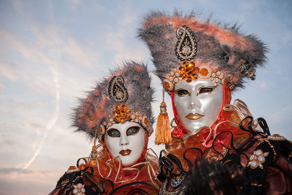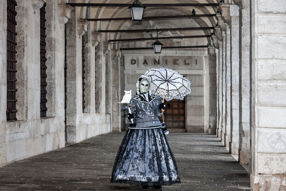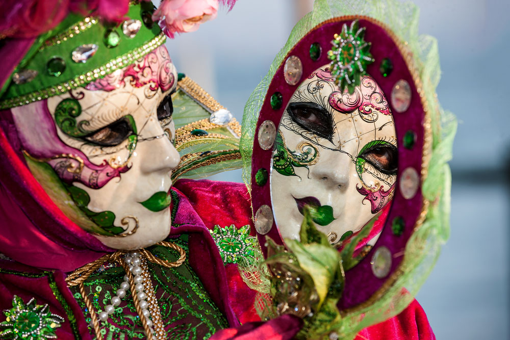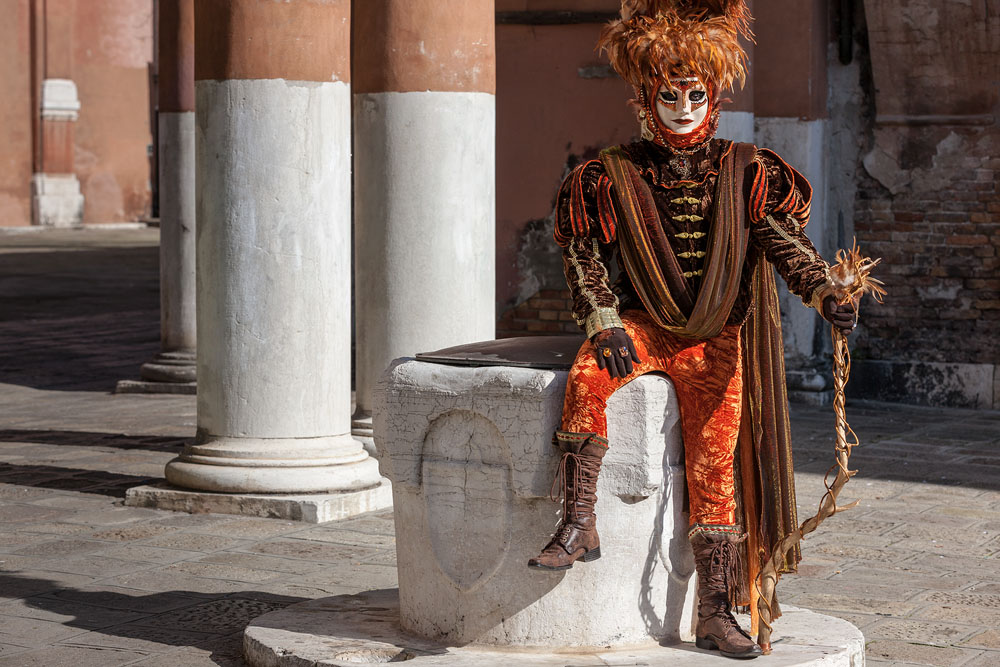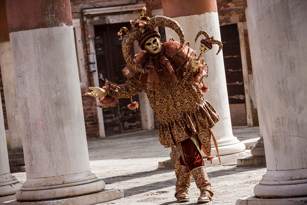 Morgens, wenn einem die Luft kühl und feucht umhüllt und es ganz still ist, nur das Geräusch des Besens eines Straßenkehrers über das Pflaster des Markusplatzes streicht, stehe ich gerne am Ufer der Riva degli Schiavoni und schaue hinüber nach San Giorgio di Maggiore oder Santa Maria della Salute. Zu dieser frühen Stunde beginnt der Zauber von Venedig, wird es zur Kulisse wie in einem Film Fellinis oder zum „Schönsten Ballsaal der Welt“, wie Napoleon gesagt haben soll. Auf dieser Bühne wird alljährlich an den „12 tollen Tagen“, einer Oper von Goldoni gleich, der Carnevale di Venezia gegeben.