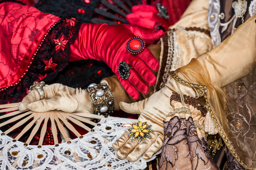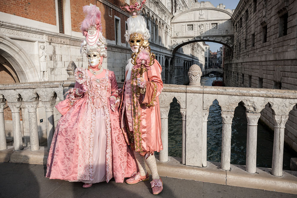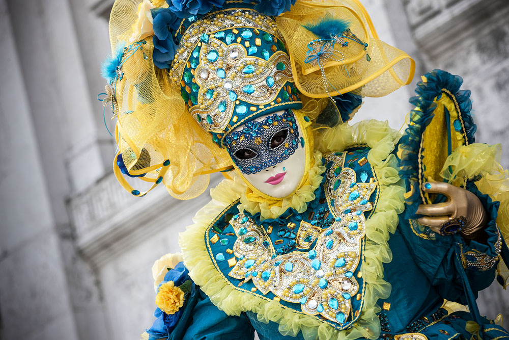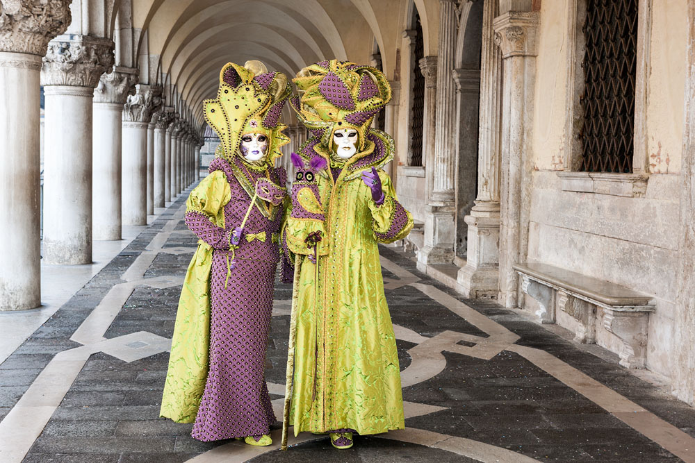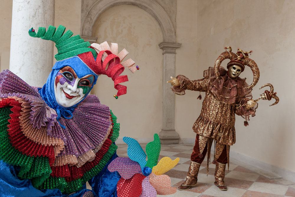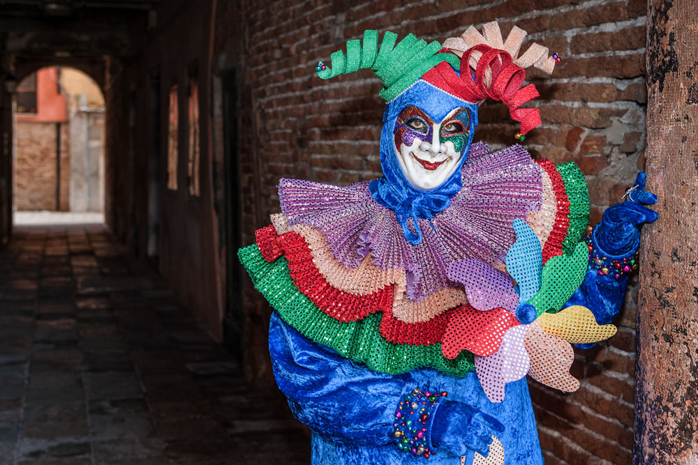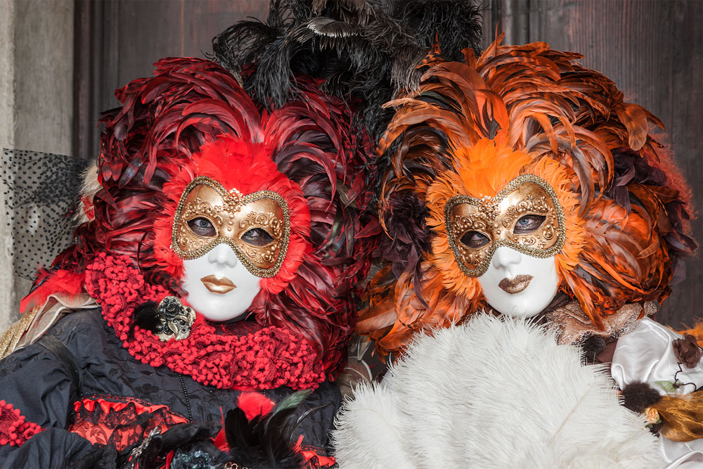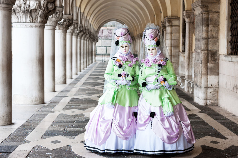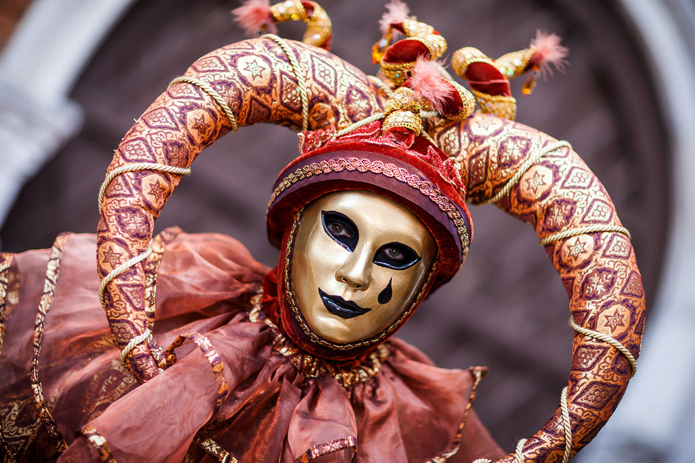 Morgens, wenn einem die Luft kühl und feucht umhüllt und es ganz still ist, nur das Geräusch des Besens eines Straßenkehrers über das Pflaster des Markusplatzes streicht, stehe ich gerne am Ufer der Riva degli Schiavoni und schaue hinüber nach San Giorgio di Maggiore oder Santa Maria della Salute. Zu dieser frühen Stunde beginnt der Zauber von Venedig, wird es zur Kulisse wie in einem Film Fellinis oder zum „Schönsten Ballsaal der Welt“, wie Napoleon gesagt haben soll. Auf dieser Bühne wird alljährlich an den „12 tollen Tagen“, einer Oper von Goldoni gleich, der Carnevale di Venezia gegeben.