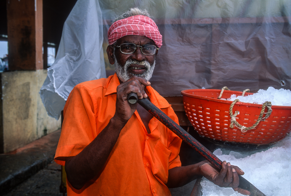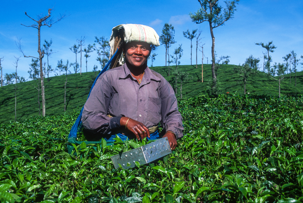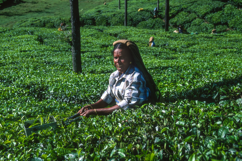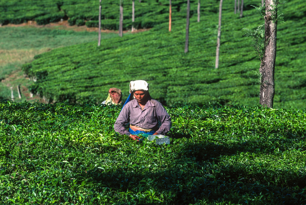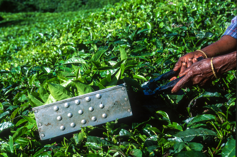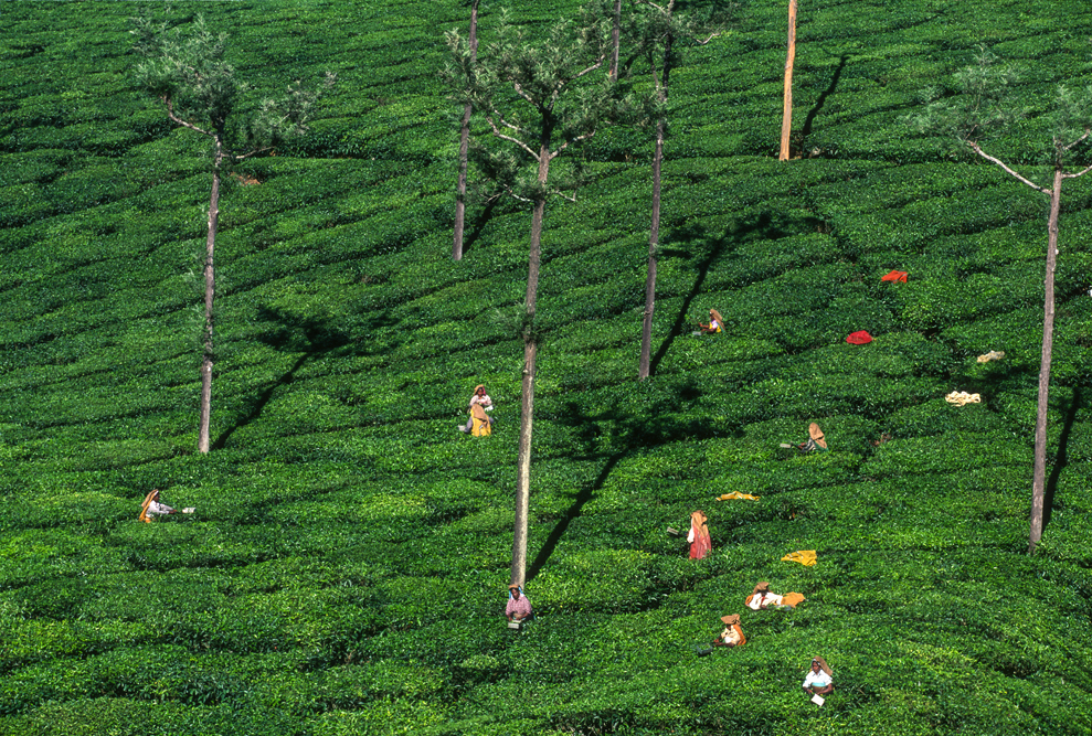 Am späten Nachmittag erreiche ich Valparai im Bundesstaat Tamil Nadu. Am nächsten Morgen lacht die Sonne ihr schönstes Lächeln vom Himmel und die Teefelder, die am vergangenen Tag noch so stumpf in die Landschaft gebettet schienen, erstrahlen jetzt in allen „fifty shades of green“. Hier wird der Nilgiri-Tee angebaut. In der Kühle des frühen Morgens sind die Pflückerinnen bereits am Werk. Sie nutzen die Zeit, bevor die Sonne erbarmungslos vom Himmel brennt. Die Teeblätter werden hier nicht mit der Hand gezupft, sondern mit einer Art Teeschere abgeerntet. Besucher sind auf den Teeplantagen nicht willkommen, da in westlichen Medien allzu oft über die schlechten Arbeitsbedingungen und ausbeuterische Entlohnung berichtet wurde. Unverständlich eigentlich, denn für „alle“ niederen Kasten Indiens gilt „harte Arbeit, karger Lohn“. Mein indischer Freund Althaf erweist sich auch hier als wahrer Schatz. Er verhandelt mit dem Vorarbeiter, und der lässt mich die Bilder machen, von denen ich geträumt habe. Allerdings bin ich nachher nass von Kopf bis Fuß, denn in den Teebüschen hängt noch der Regen des Vortages.