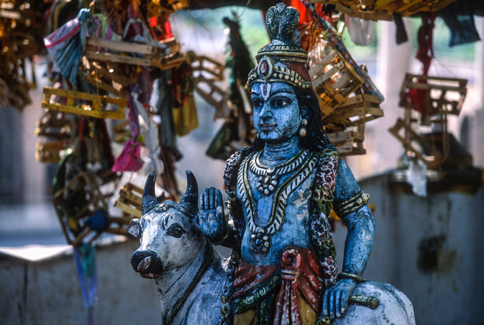 Indien ist meine Hassliebe. Ich hasse, die Armut, den Schmutz und den Lärm, aber es zieht mich immer wieder nach hier zurück, denn ich liebe die Menschen und Farben Indiens. Im Süden war ich vorher noch nie und freue mich so sehr auf diese Reise ins Unbekannte, das ich bereits Monate vor dem Aufbruch mit den „spirituellen“ Vorbereitungen beginne. Der Begriff Spiritualität könnte in Indien entstanden sein, allerorts Tempel, Götter, Religionen, heilige Männer, heilige Kühe !… Der Journalist Helge Timmerberg hat Indien in einer bezeichnenden Anekdote beschrieben.