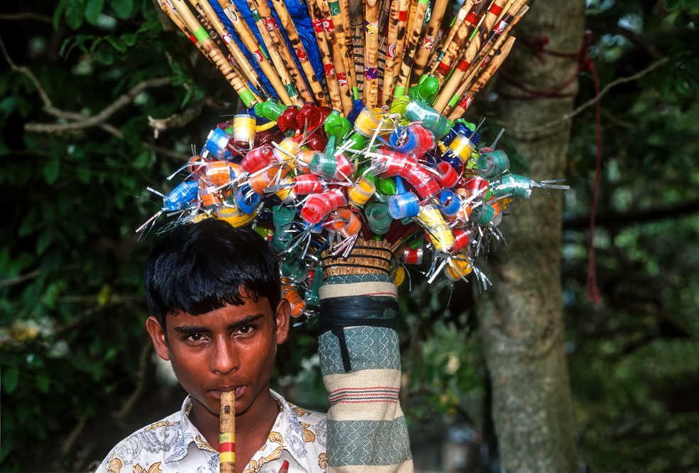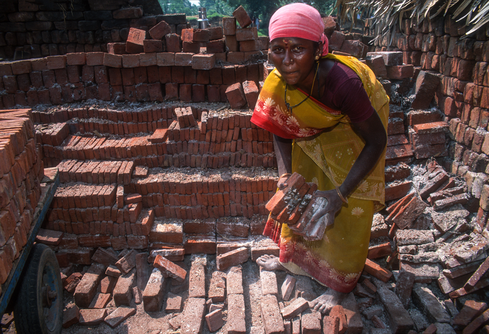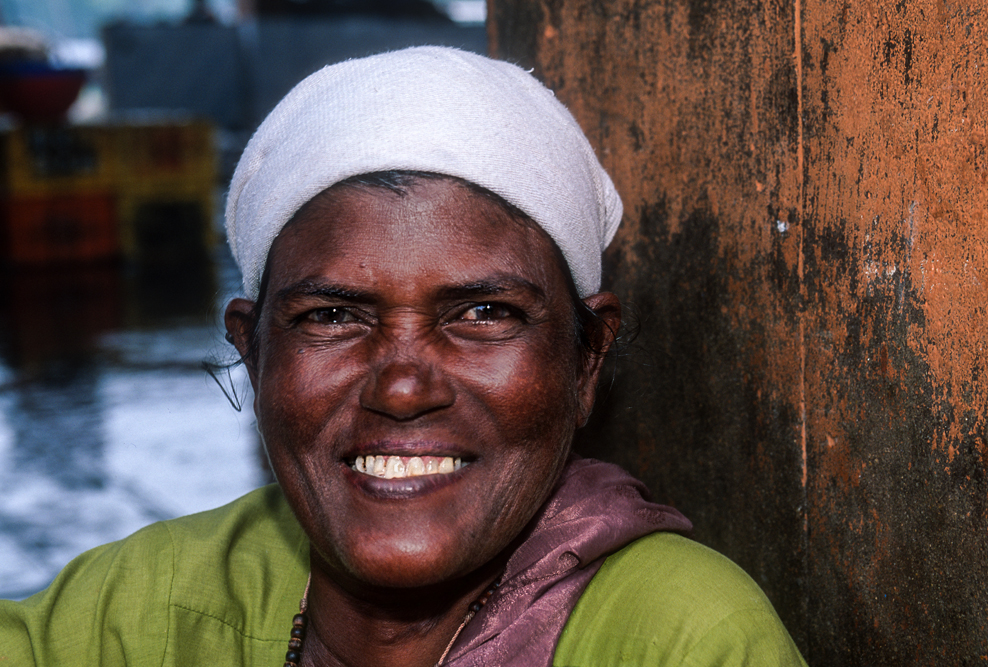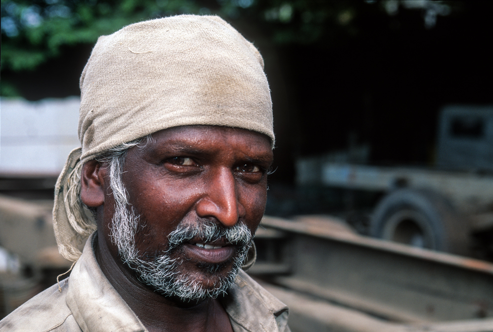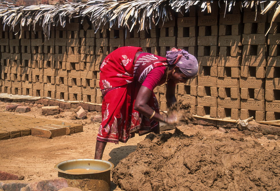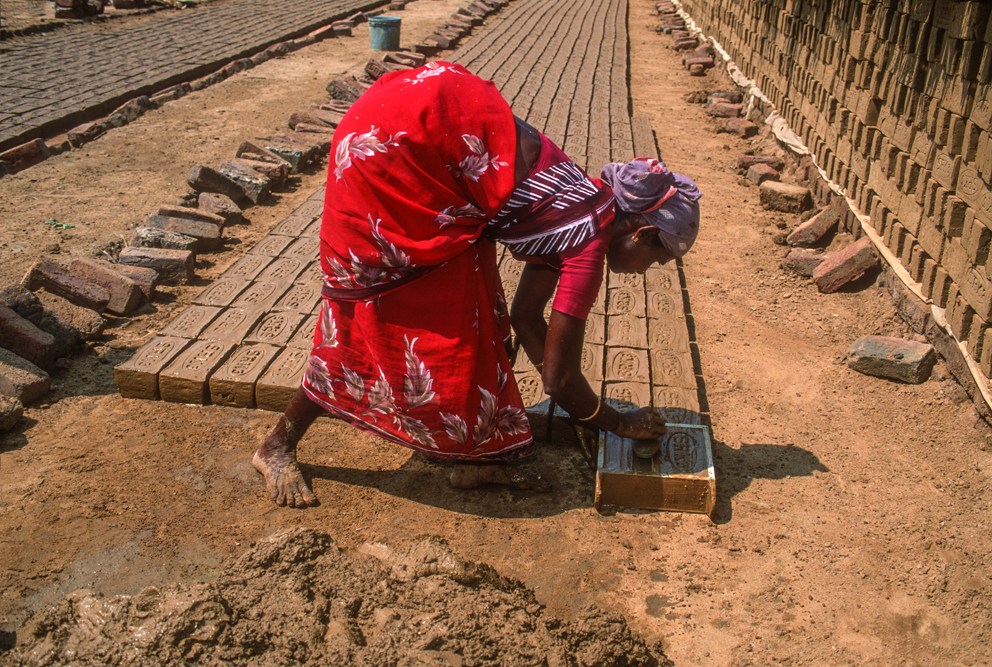 Kurz hinter Madurai, nur wenige Kilometer außerhalb der Stadt liegt am Wegesrand eine kleine Backsteinfabrik. Harte Arbeit unter sengender Sonne – also Frauensache ! Schon von weitem kündet der schwarze Qualm von den ungesunden Arbeitsbedingungen. Die Frauen formen mit einfachen, rechteckigen Holzmodeln die Ziegel und drücken für die spätere Entlohnung noch ihren Stempel auf. Danach bleiben die Rohlinge zum Trocknen in der Sonne, bevor sie in den Brennofen wandern. Ich bin mit der Kamera mittendrin und habe das Gefühl im Vorhof der Hölle zu sein, so heiß ist es. Die Frauen strahlen jedoch trotz der Mühsal in die Kamera. Auch wenn es sarkastisch klingt, kommt mir der Ausspruch des japanischen Oberst aus die Brücke am Kwai in den Sinn „…habt Freude an der Arbeit !“
