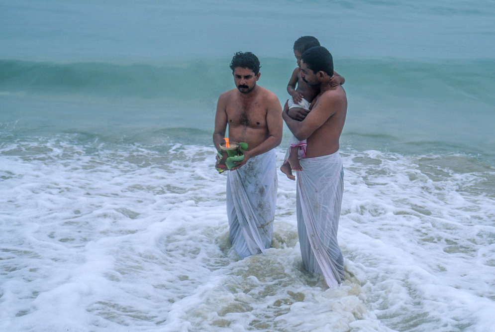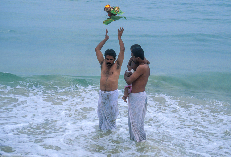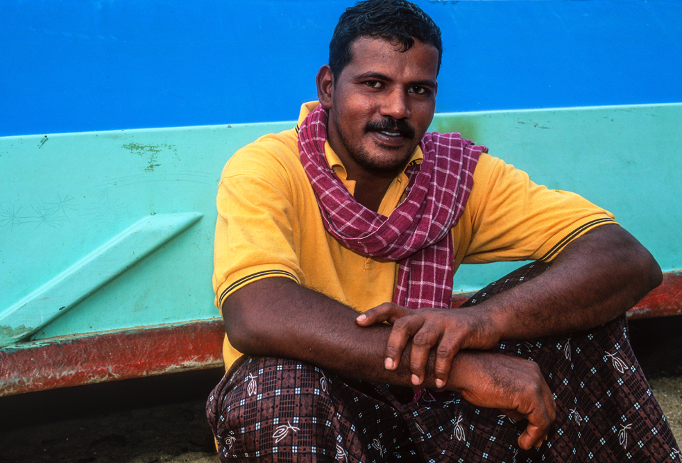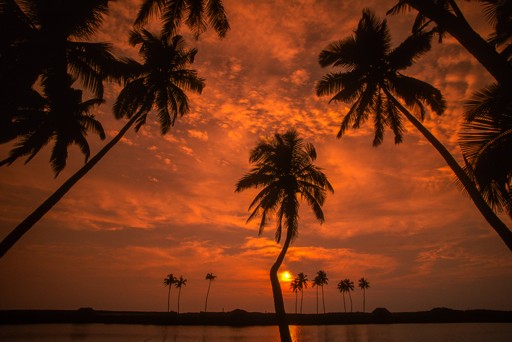 Am Abend erreiche ich bei Verkala den indischen Ozean. Hier bei den Fischern, die nach erfolgreichem Fang am Strand sitzen und Karten spielen, erlebe ich einen jener klischeehaften Sonnenuntergänge,bei dem der Sonnenball rot glühend ins Meer sinkt und der Himmel sich erst orange, dann rot und zum Schluss violett färbt. Hat man als Zutat noch ein Paar Palmen zur Verfügung, ergibt dies ein Traumbild.