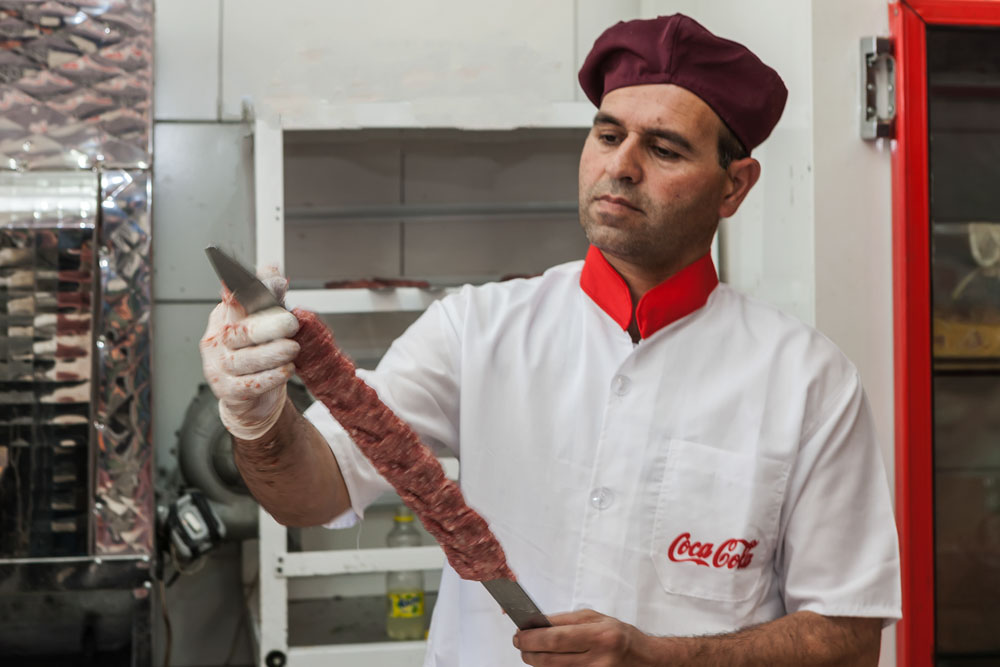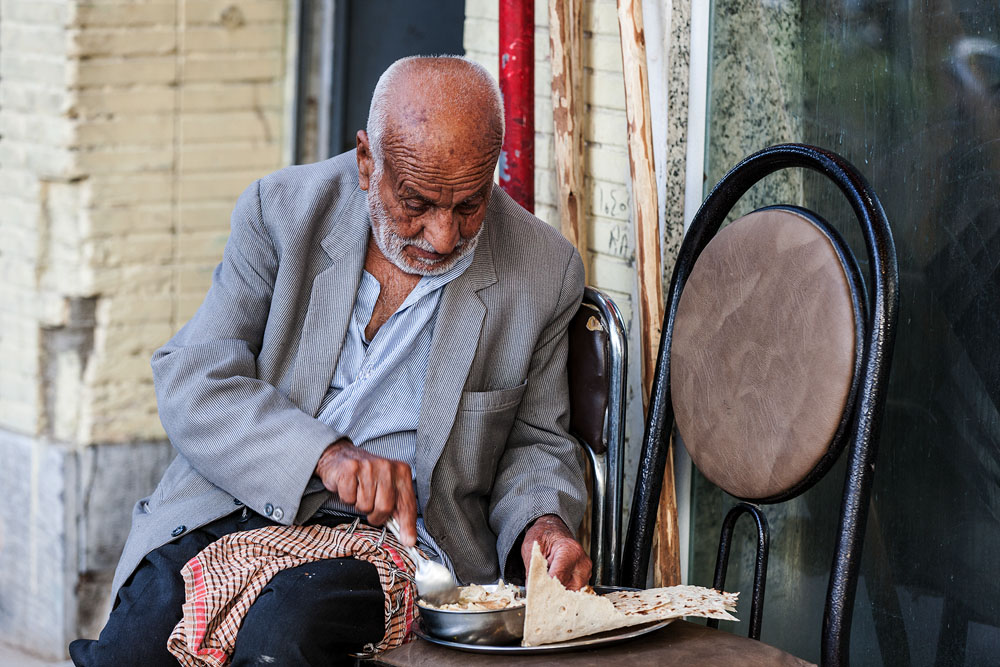 Findet man auf einer Speisekarte eine Suppe, so zumeist eine Graupensuppe. Ein Shish-Kebab, Hähnchen- oder Lamm-Spieß, gebratenes Huhn und – seltener ein Süßwasserfisch – sind die Standardgerichte. Dazu kommt das dünne Fladenbrot, das jedoch nur ganz frisch aus dem Ofen richtig lecker schmeckt und dessen Konsistenz nach wenigen Stunden bereits an ein Fensterleder erinnert. Reis in üppigen Mengen, dazu gegrillte Tomaten, rohe Zwiebeln und sauer eingelegtes Gemüse. Die Köche im Iran sind echte „Spießer“. Ich weiß nicht, ob mich die Erinnerung trügt; ich fand das Essen in der Vergangenheit „leckerer“.