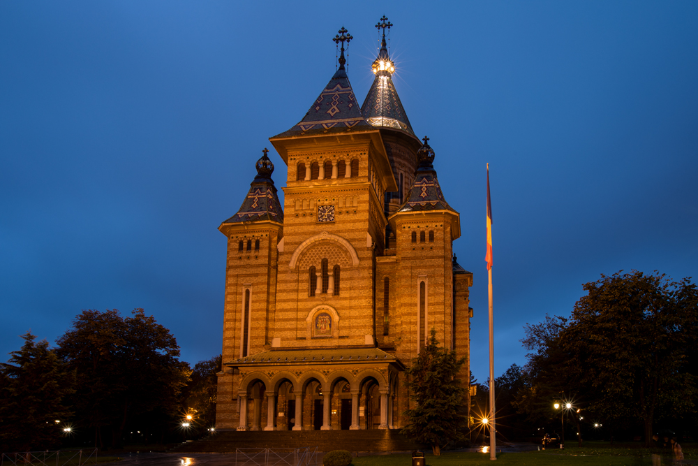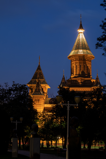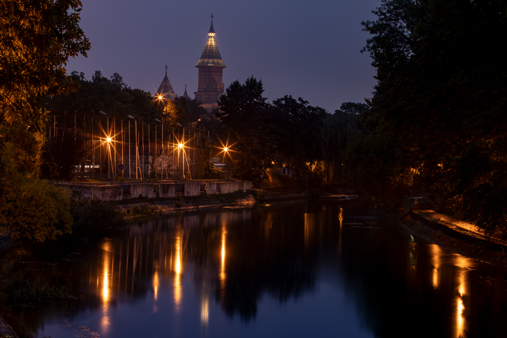 Die Pandemie hat auch diesen Traum erst einmal auf Eis gelegt und man hat „die Kultur“ auf 2023 verschoben. Timișoara erinnert ein wenig an Wien, was nicht verwundert, stand es doch lange Zeit unter dem Einfluß der Habsburger, war der Landstrich, den man auch Donauschwaben nennt, Teil der KuK-Monarchie. Die Gebäude rund um den Piața Unirii bilden ein in sich geschlossenes Ensemble, das schon sehr an die Wiener Ringstraße erinnert. Als es noch dunkel ist, am frühen Morgen, sind wir gestartet. Der Blick über den Bega-Kanal, in dessen dunklen Wassern sich das Licht der Straßenlaternen spiegelt, auf die Kathedrale der Heiligen drei Hierarchen ist trotz des Regens bezaubernd.