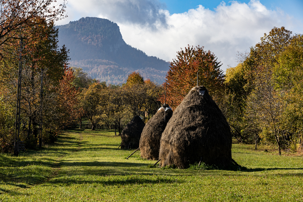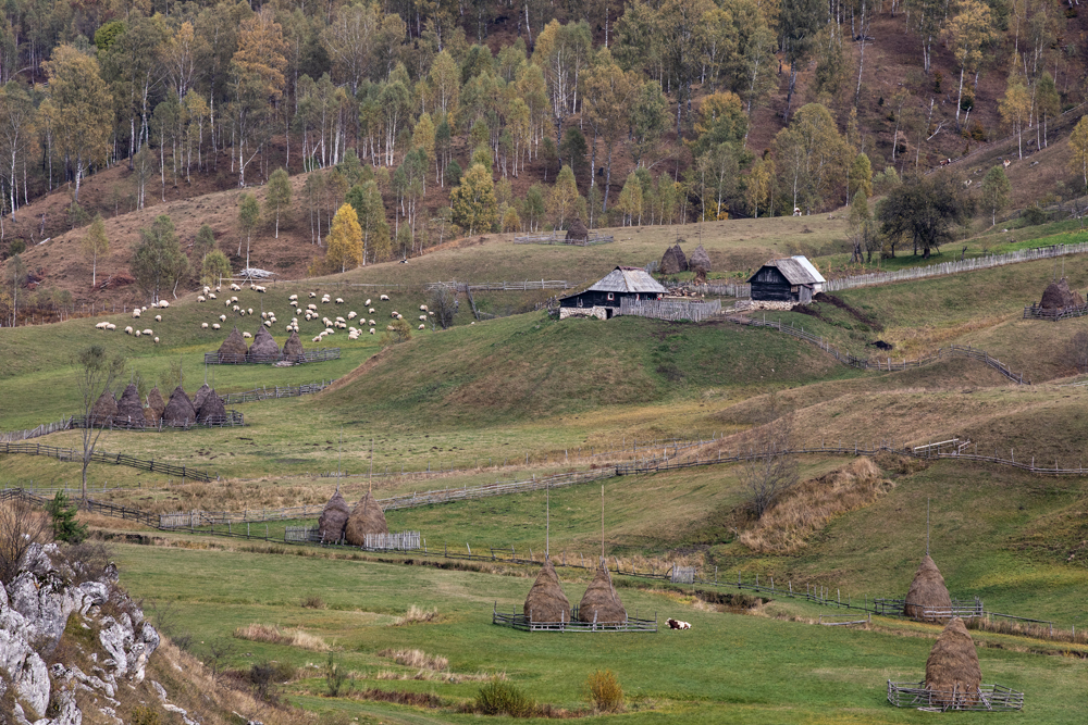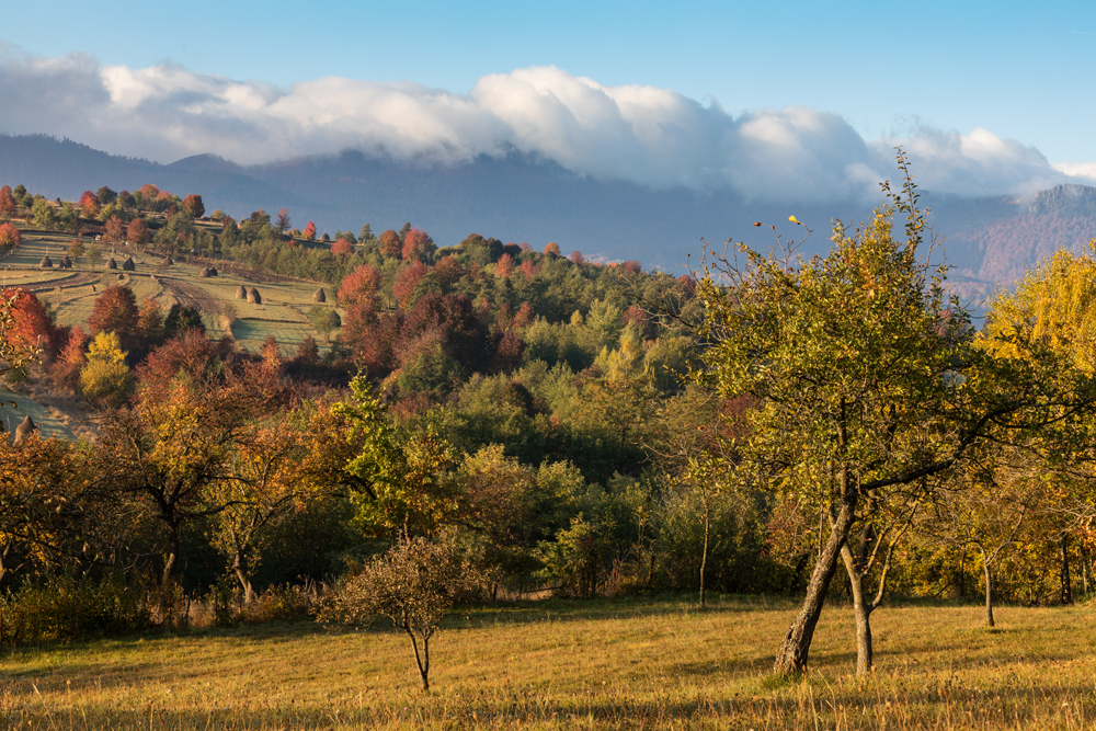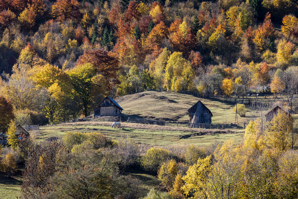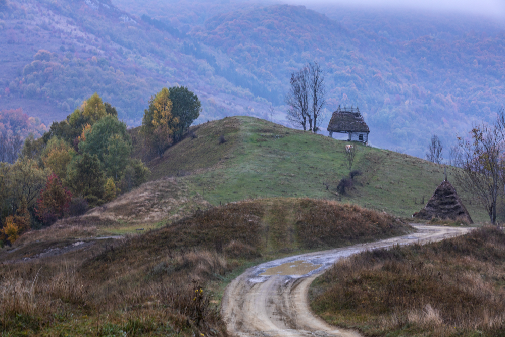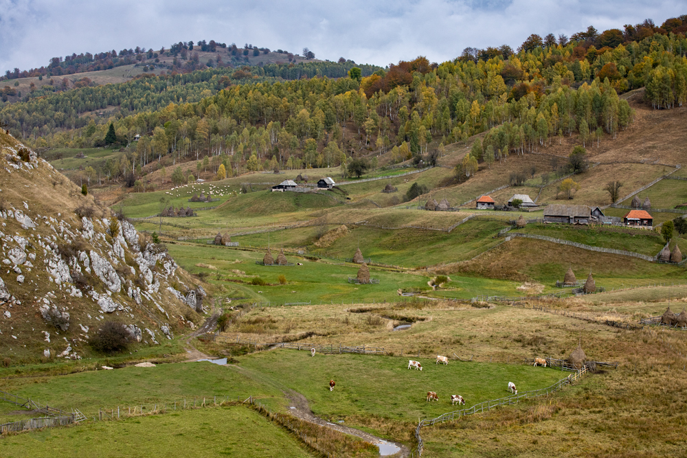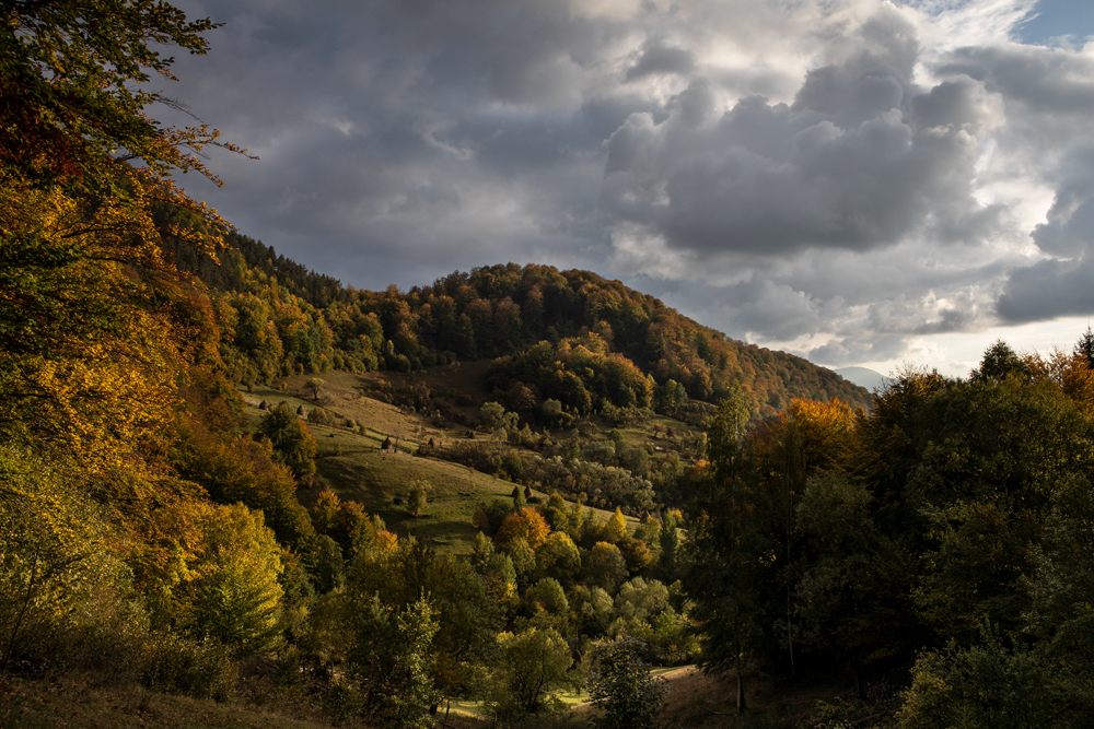 …wir schreiben das Jah 2021 und wir sind nicht in den unendlichen Weiten des Weltraums, nein wir sind nur in der Wildnis der Westkarpaten und machen eine Tour durch die Sureano Berge. Zugegeben ein abgelegenes Fleckchen Erde und außer ein paar Hirten mit ihren Schafherden begegnet uns niemand an diesem Tag. Die Anfahrt dorthin ist anspruchsvoll. Mit einem allradgetriebenen Untersatz, wär‘s ein Kinderspiel, aber den haben wir leider nicht. Tagelange Regenfälle haben die Piste ausgespült und für die knapp 26 km benötigen wir mehr aus 2.5 Stunden. Die Täler sind von satten Weiden und Heuhaufen für das Winterfutter gesäumt. An den Hängen grasen Kühe und Schafe. Der Tag hat sich noch nicht entschieden, ob er ein „guter“ werden will. Nach einer anstrengenden Wanderung genießen wir immer wieder die Ausblicke in die sonnendurchfluteten Seitentäler, die von der Pracht der Herbstfarben geradezu zu bersten scheinen.