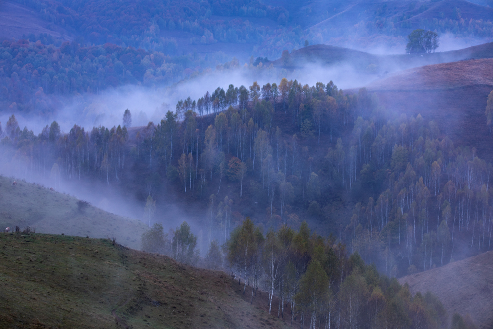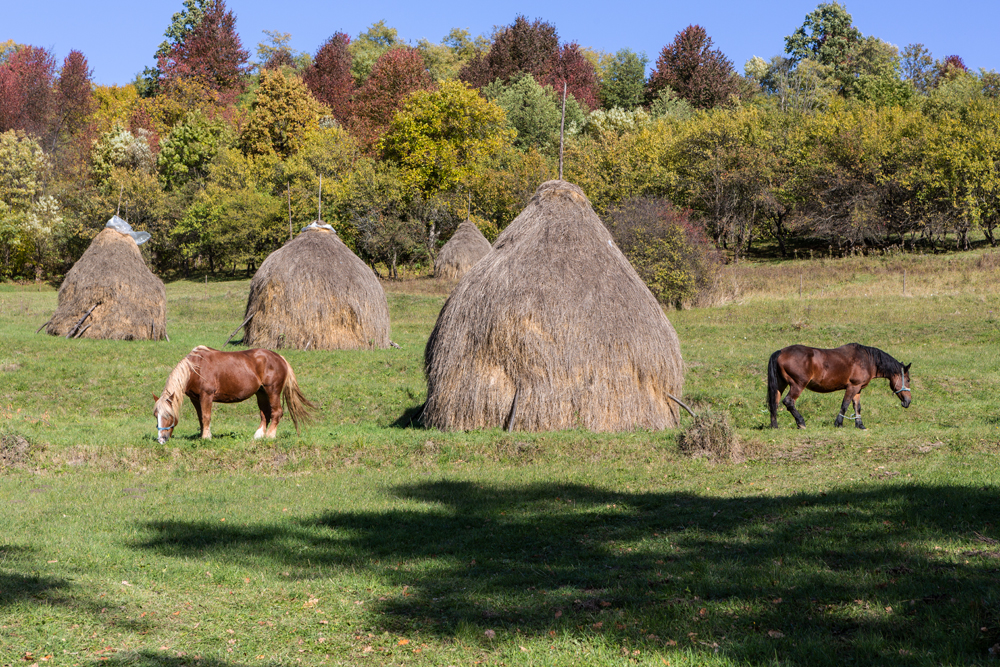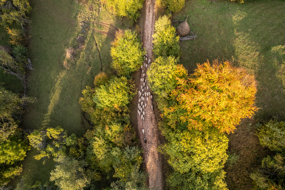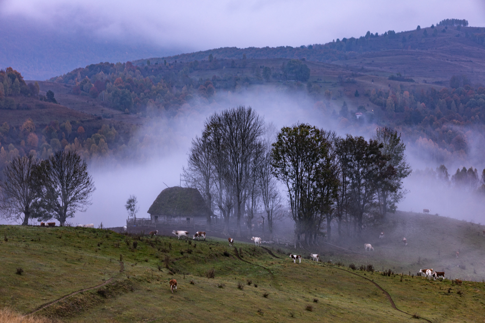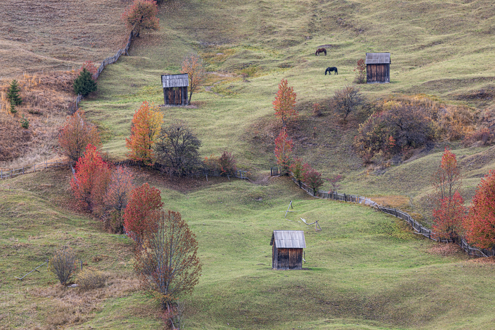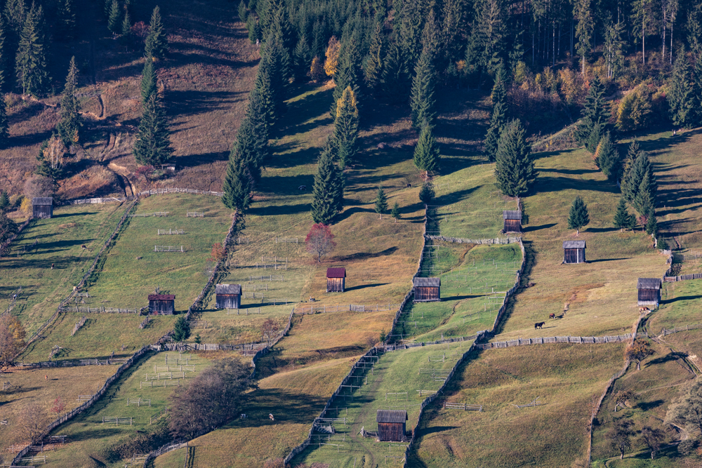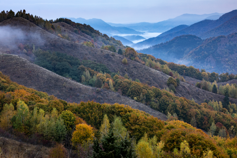 …wir schreiben das Jah 2021 und wir sind nicht in den unendlichen Weiten des Weltraums, nein wir sind nur in der Wildnis der Westkarpaten und machen eine Tour durch die Sureano Berge. Zugegeben ein abgelegenes Fleckchen Erde und außer ein paar Hirten mit ihren Schafherden begegnet uns niemand an diesem Tag. Die Anfahrt dorthin ist anspruchsvoll. Mit einem allradgetriebenen Untersatz, wär‘s ein Kinderspiel, aber den haben wir leider nicht. Tagelange Regenfälle haben die Piste ausgespült und für die knapp 26 km benötigen wir mehr aus 2.5 Stunden. Die Täler sind von satten Weiden und Heuhaufen für das Winterfutter gesäumt. An den Hängen grasen Kühe und Schafe. Der Tag hat sich noch nicht entschieden, ob er ein „guter“ werden will. Nach einer anstrengenden Wanderung genießen wir immer wieder die Ausblicke in die sonnendurchfluteten Seitentäler, die von der Pracht der Herbstfarben geradezu zu bersten scheinen.