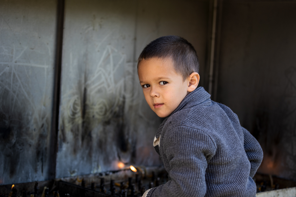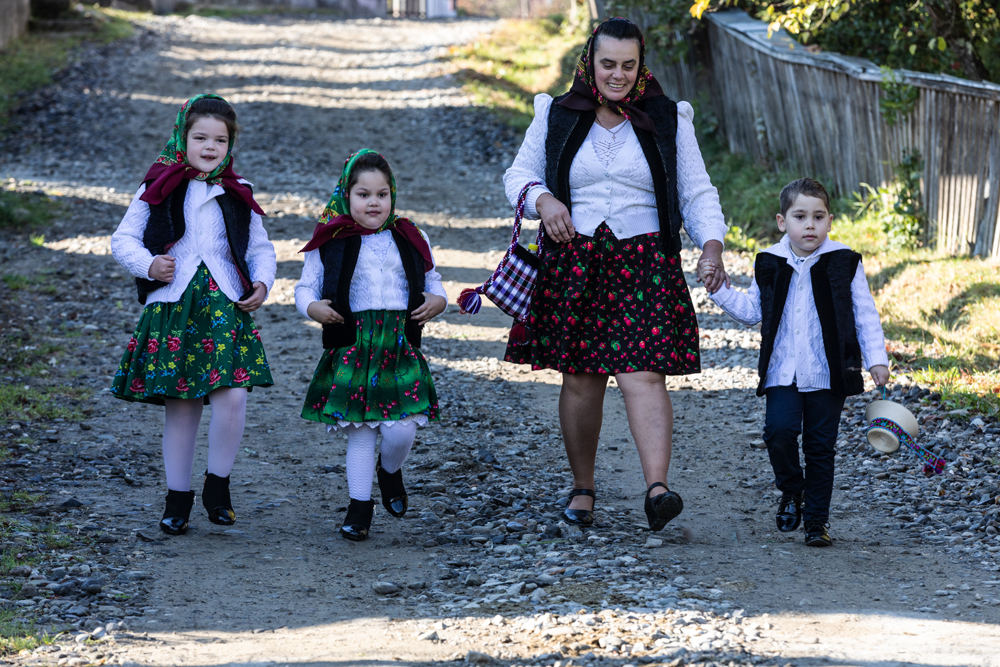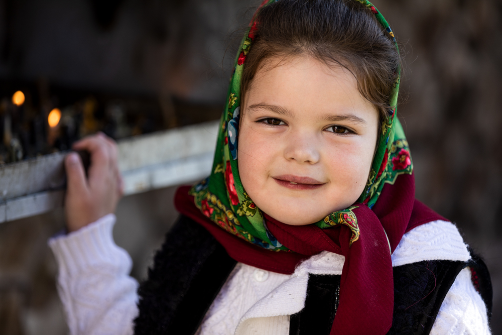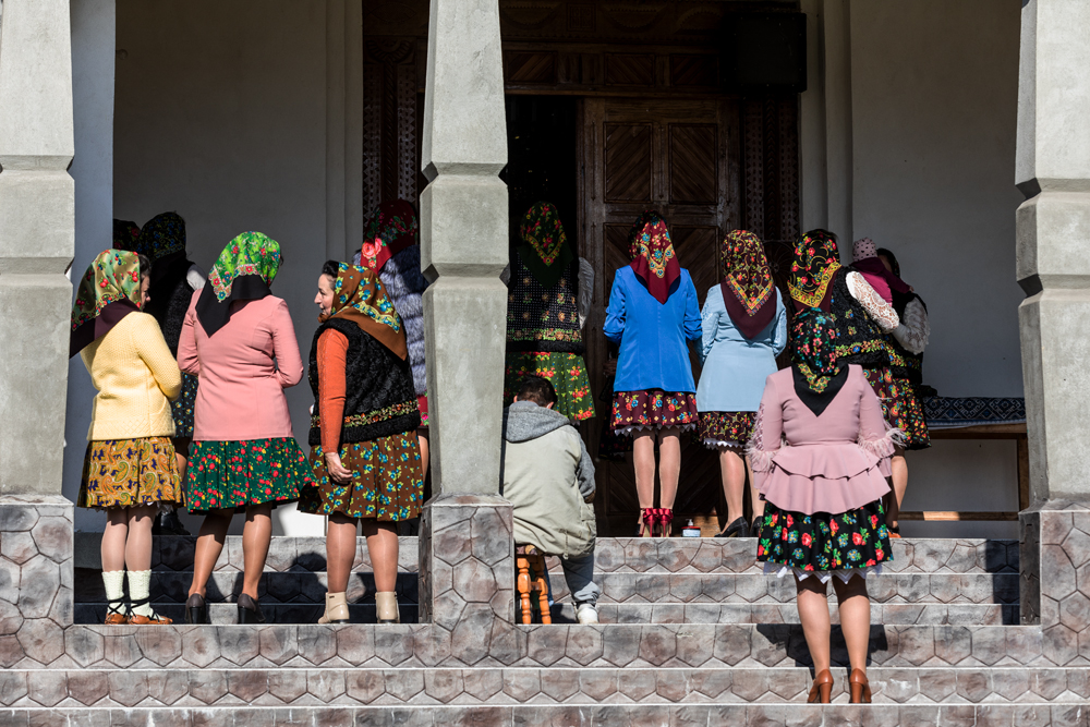 Ich habe von der Letzten Tour Abzüge von einigen Portraits machen lassen und wir such nach den Menschen, dazu. Das schafft sofort Kontakte und gute Publicity. Bei meinem letzten Besuch hatte ich gehört, dass Sonntags viele Familien noch in traditioneller Tracht zur Kirche gehen. Also sind wir pünktlich zum Gottesdienst an der Kirche. Das Gotteshaus ist voll bis auf den letzten Platz, so voll, dass die zu spät gekommenen auf den Stufen vor der Kirche stehen, um der Predigt zu lauschen. Ich verstehe die Worte nicht aber am Ende der Zeremonie geht der Prediger mit einer goldenen Ikone durch die Reihen und alle Gläubigen küssen das Heiligenbild. Ich kann das nicht „glauben“ und noch weniger fassen, aber wahrscheinlich ist es die Ikone des „Heiligen Covid“.