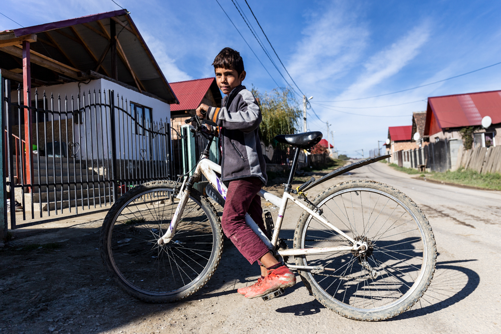 Ich muss unbedingt die Geschichte von Samira erzählen. Wir waren auf dem Weg von Brasov zum Flughafen nach Bukarest. Die Kameras eigentlich schon weggepackt. Hinter Brasov wird eine Brücke saniert und es gibt eine Umleitung. Die Straße hätten sie am besten gleich mit gemacht, denn sie ist voller tiefer Schlaglöcher.  Sie führt uns durch Augustin. Ein unspektakuläres Dorf. Einzig ein Mann auf einem Eselskarren der sich geschickt an den Schlaglöchern vorbei schlängelt, lässt uns langsamer fahren. und im nächsten Moment sehe ich zwei kleine Mädchen am Straßenrand. Samira, mit Ihrer Freundin Carla. Wir halten an und machen ein kleines Photoshooting – Minuten später ist die Hölle los. Wir sind umringt von einer Kinderschar. Die anfängliche Schüchternheit weicht schnell. Augustin, das habe ich zwischenzeitlich nachgelesen ist die größte Roma-Siedlung in Rumänien. 900 Mitglieder dieser Volksgruppe leben laut letzter Volkszählung hier. Aber die ist schon 10 Jahre her. Die Verhältnisse sind prekär, die Behausungen ärmlich (hätte man eigentlich schon am Zustand der Straße ablesen können; dass die rumänische Regierung und die EU hier nichts investiert). So genau weiß aber niemand, wie viele Menschen hier tatsächlich leben. Mir kommt es so vor, als seien wir allein von 900 Kindern umringt. Daniel startet seine Drohne und ist damit sofort der Star und Samira drängt sich für das Photo dicht an mich.