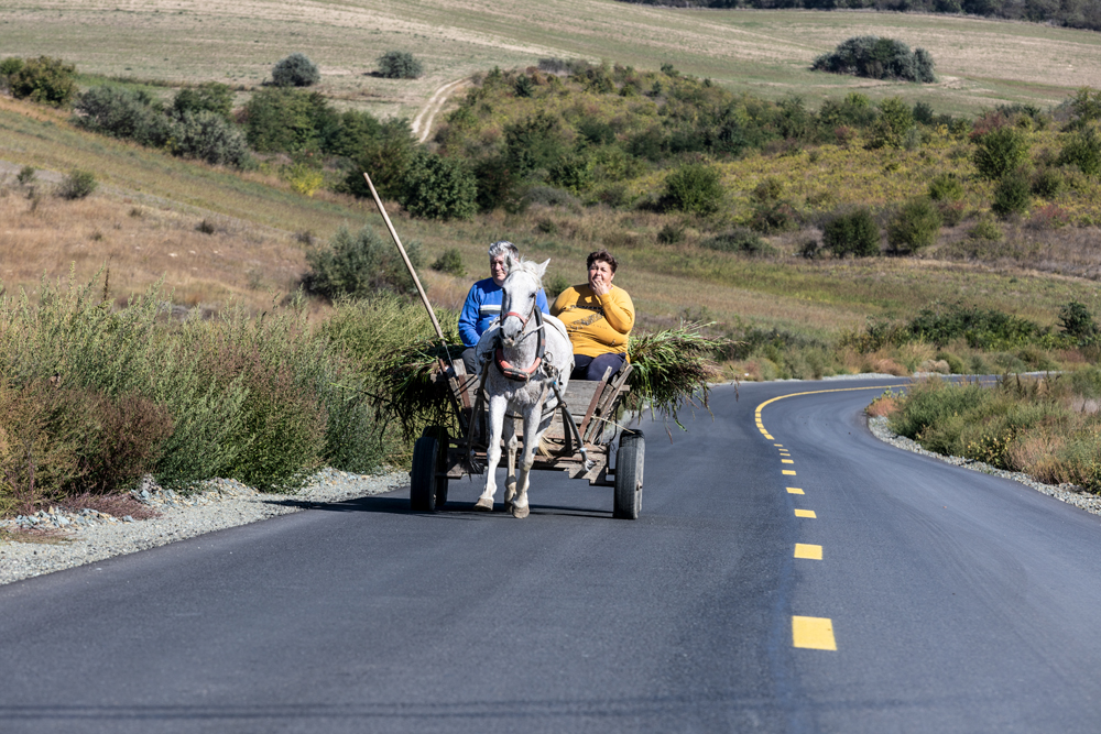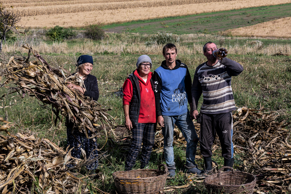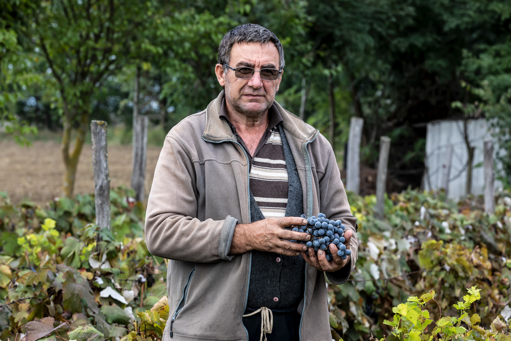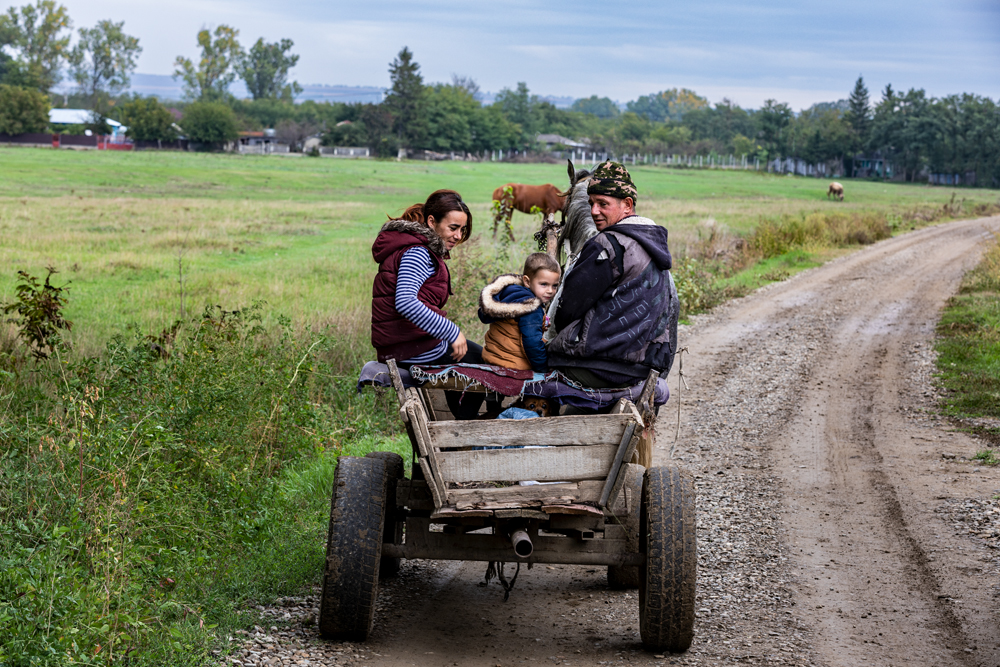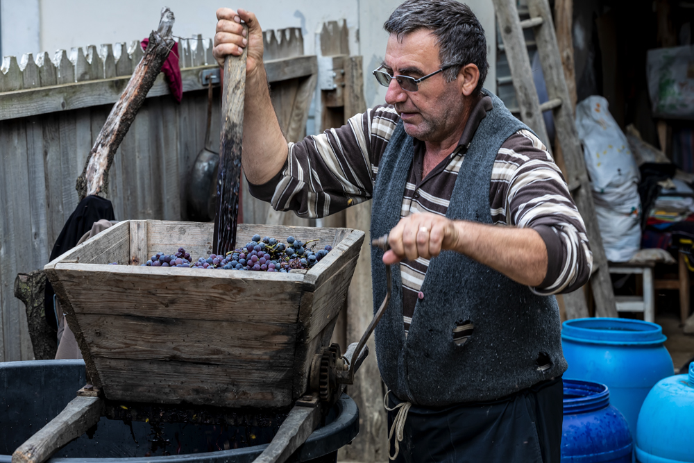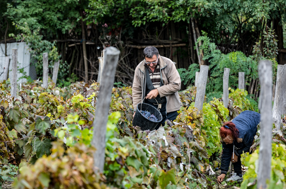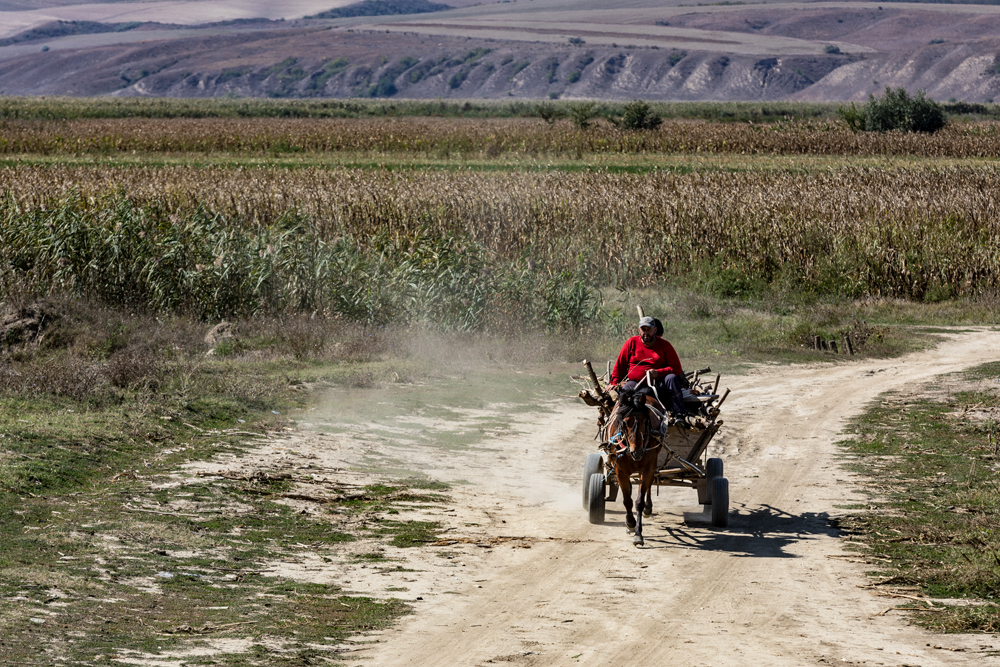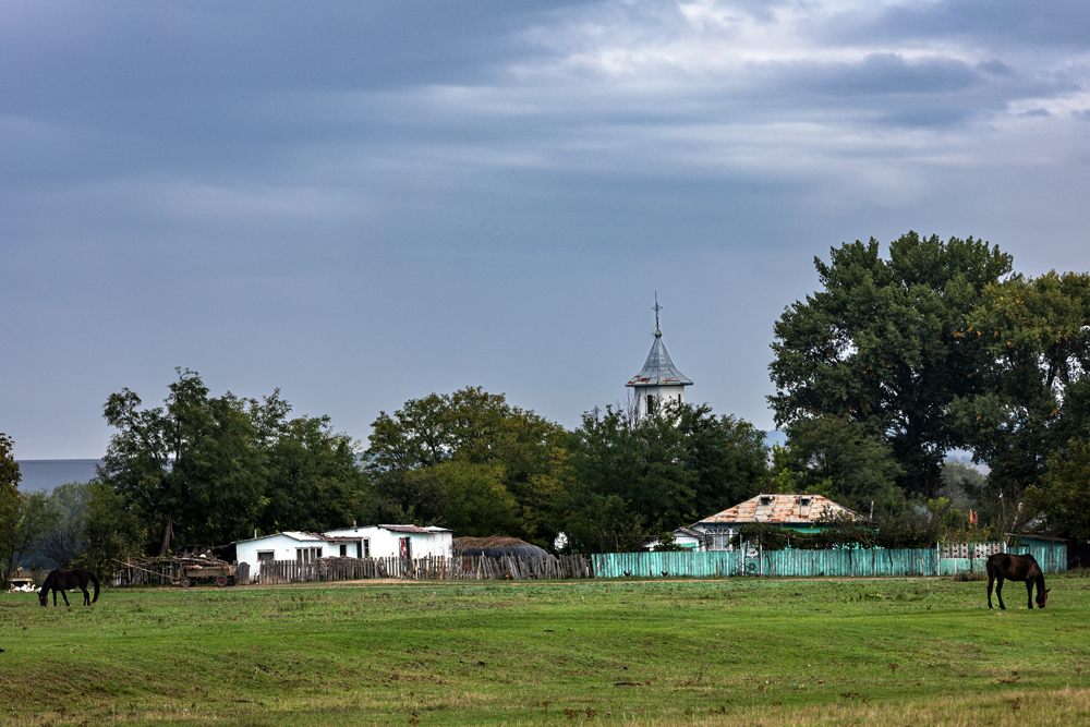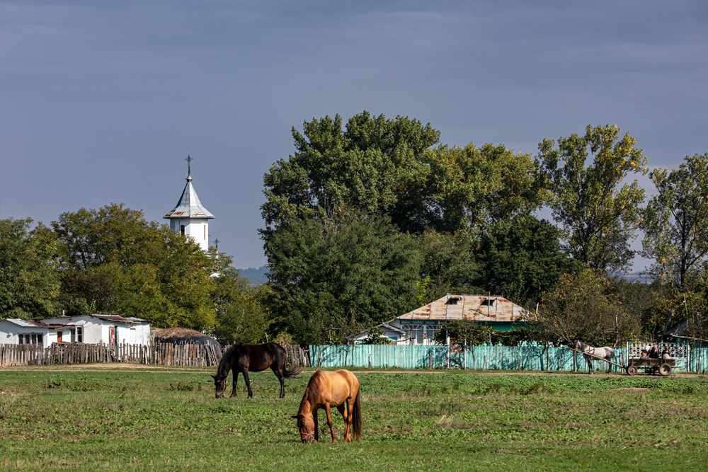 Nicht weit von Golăiești ist es nach Grădinari. Das kleine, „staubige Nest“ in Sichtweite der moldawischen Grenze gehört zu meinen ganz persönlichen Höhepunkten dieser Reise. Nach dem Regen scheint die Sonne wieder und die feuchten Wiesen dampfen regelrecht. Pferde grasen auf den Weiden und im Hintergrund ein wenig verschwommen, das kleine Dorf. Ein Idyll. Schon bald nähert sich ein pferdbespannter Wagen mit einer jungen Familie. Natürlich hält man an. Fremde im Dorf, Ausländer zumal, sind ein seltener Anblick. Es entspinnt sich ein kurzes Gespräch und schon öffnet sich auf der anderen Straßenseite ein Hoftor. Der Bauer hat auf der Straße etwas gehört, schaut neugierig nach, und winkt uns heran: Ich lesee gerade Trauben. Wollt Ihr Euch das nicht anschauen? Ablehnen sollte man solch eine Einladung niemals. Es wäre zum einen unhöflich, zum anderen würde man sich der Gelegenheit berauben das „Leben der Anderen“ kennen zu lernen. Am Ende scheiden wir gestärkt mit einem großen Glas frischem Traubensaft, der uns durchschlagenden Erfolg befürchten lässt.