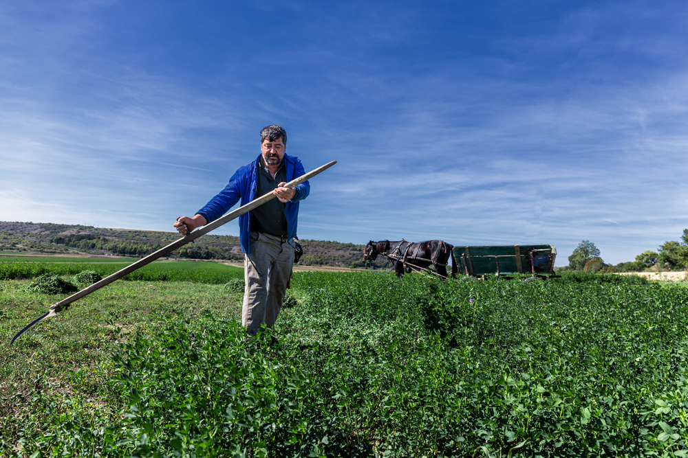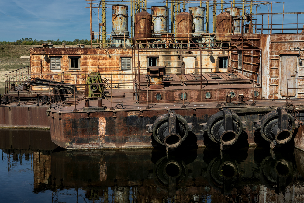 Vor Adamclisi treffen wir auf die Sünden der kommunistischen Ära. Ein riesiger, stählerner Ponton der früher als Pumpstation zur Feldbewässerung gedient haben mag, dümpelt vor sich hin und zerfällt langsam zu Rost. Unweit sind einige Männer bei der Feldarbeit. Sie schneiden Luzerne; – mit der Sense und beladen ihren Pferdewagen damit. Ein mühsames Geschäft und doch bringt es mich zum Nachdenken. Bei aller Mühe ist es doch nachhaltig und wie man so schön auf neudeutsch sagt, verfügt der Bauer über die komplette „Wertschöpfungskette“. Woher ich komme, will er wissen. Deutschland! Limba Germana brummt er, als erkläre das alles 😉
