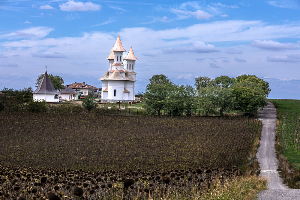 Zwischen Galați und Brăila überspannt eine neue Hängebrücke die Donau, sie verbindet die Walachei mit Moldau. Noch ist sie nicht fertig und wir müssen die Fähre auf die andere Seite nehmen. Wir lassen die Donau hinter uns und durchqueren ein welliges Hügelland, welches ein wenig an die Toskana erinnert. Rechts und links der Straße, soweit das Auge reicht: Felder mit verblühten und abgeernteten Sonnenblumen. Ich denke, wie muss es hier im Juni ausschauen, wenn alles in voller Blüte steht. Der große Malerfürst Vincent van Gogh hätte seinen Pinsel gar nicht mehr aus der Hand legen mögen.