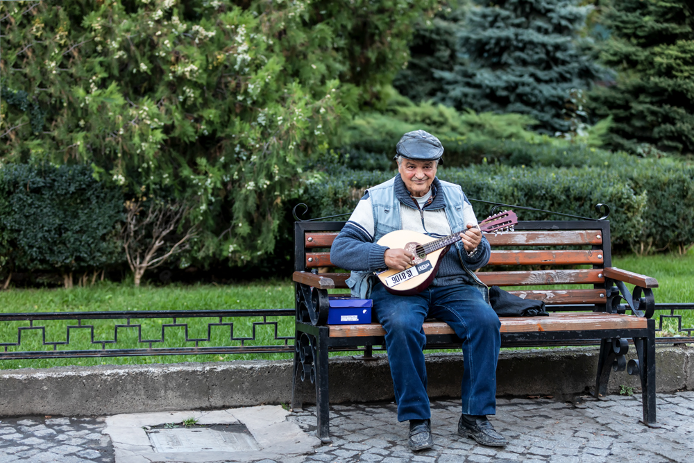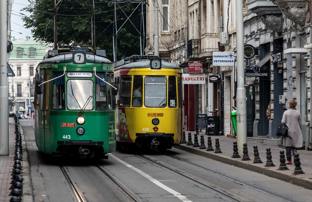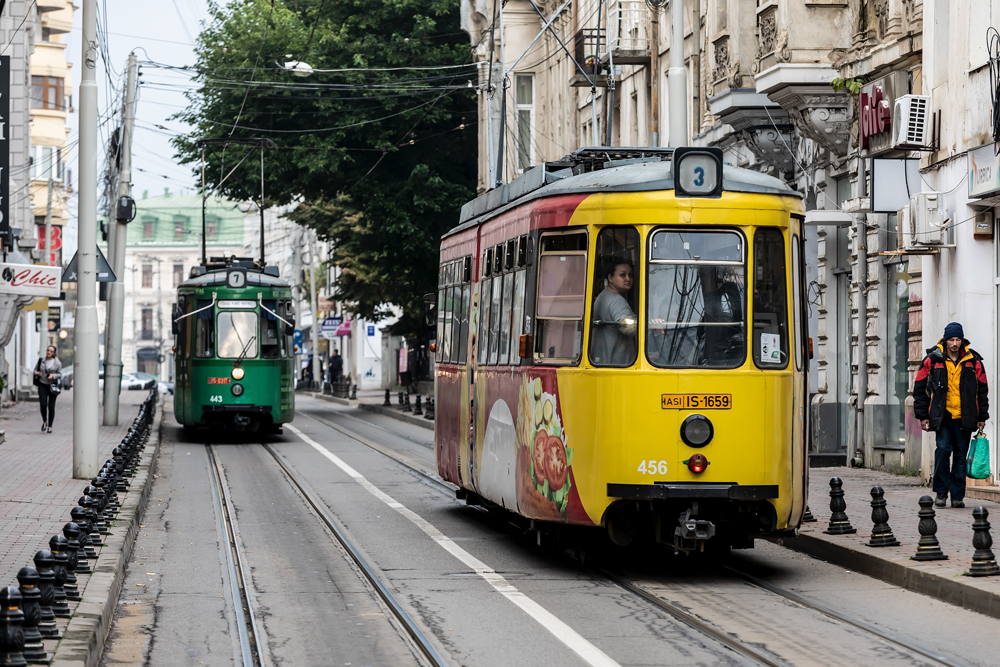 Während ich mein Stativ im Torbogen des Eingangs zur Mănăstirea Golia aufbaue, höre ich hinter mir zwei Geräusche, die mein Interesse wecken. Das eine ist das Rumpeln einer Straßenbahn. Als ich mich herumdrehe ist es wieder wie ein Flashback in meine Jugendzeit. Denn es ist ein alter Wagen der Linie 24, die die Frankfurter Innenstadt mit meiner Heimatstadt verband. Wie alt der wohl sein mag ? 50 Jahre mindestens. Das zweite sind Gitarrenklänge. Ich entdecke einen älteren Herrn der auf einer Parkbank im Innenhof des Klosters sitzt und spielt. Irgendwie trage ich das „Deutschland-Gen” auf die Stirn tätowiert (?), denn nach dem höflichen Bună dimineața spricht er auf deutsch mit deutlich schwäbischem Einschlag weiter. 25 Jahre hat er „beim Daimler” gearbeitet, bevor er in seine Heimat zurückgekehrt ist. Deutschland war so gut. Was müsst ihr von uns denken. Ich schaue ihn fragend an. Er erzählt, das Iași In den letzten Jahren traurige Berühmtheit als Hochburg des europaweit organisierten Taschendiebstahls erlangt hat. War mir neu! Ich frage mich aber auch was ich mit dieser Information anfangen soll, denn außer das auch in Rumänien die Schere zwischen arm und reich immer mehr auseinandergeht und es deshalb zu sozialen Spannungen kommt, hat sie kaum Informationsgehalt. Ich verabschiede mich vom „Daimler-Mann“ und da der Himmel deutlich Signale eines nahenden Gewitters von sich gibt, machen wir uns auf zu neuen Ufern.