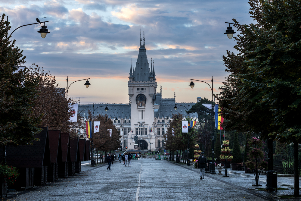 Am späten Nachmittag kommen wir in Iași an und ich fülle eine weitere Bildungslücke. Iași ist mit fast 300.000 Einwohnern die viertgrößte Stadt Rumäniens und das Verwaltungszentrum der Provinz Moldau. Nachdem ich Bilder des Kulturpalastes gesehen hatte, dessen erleuchtete Silhouette sich nach einem Regenschauer auf dem Straßenpflaster spiegelte, stand Iași ganz weit oben auf meiner Wunschliste. Regen und Sonnenschein gleichzeitig? …nun, wünschen darf man sich ja was!