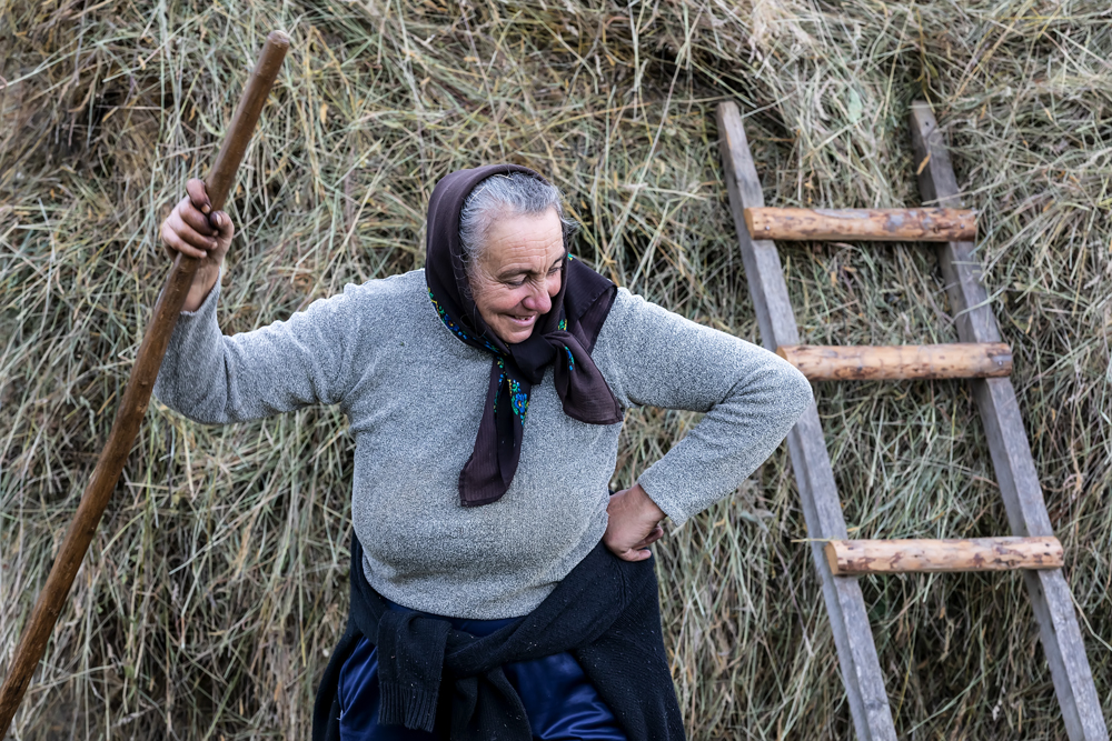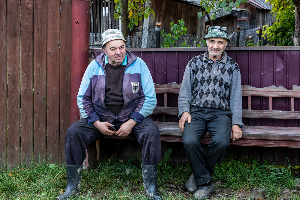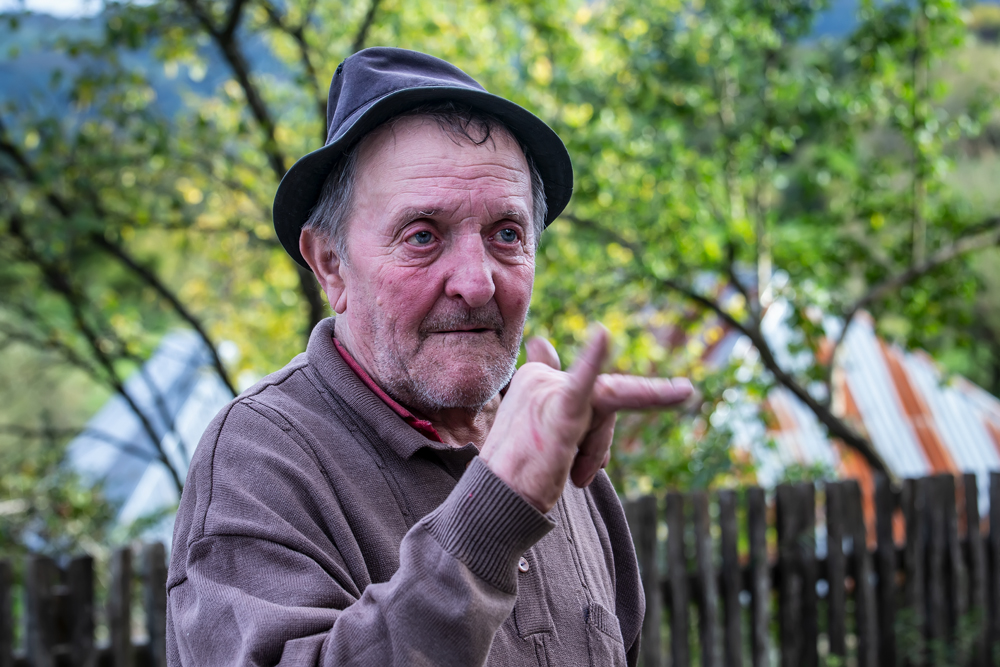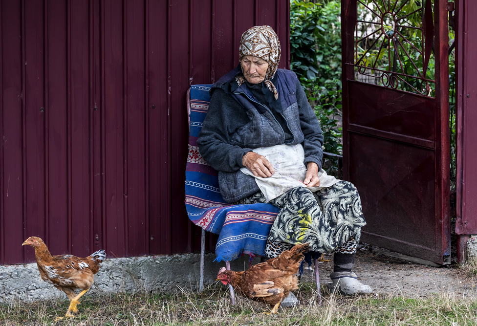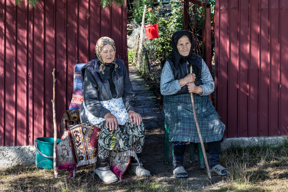 Wir sind schon fast wieder aus Grădinari heraus, da sehe ich aus dem Augenwinkel zwei alte Damen, die Ihren Hühnern nachjagen. Als „Hühnereinfänger“ habe ich Erfahrung und bin sicher besser zu Wege als die beiden Omas. Nachdem das Federvieh eingefangen ist, nehmen sie wieder den Platz auf Ihrer Bank am Gartenzaun ein, um die Welt an sich vorüberziehen zu lassen. Zusammen seien sie 176 Jahre alt, erzählen sie. Dank meiner Qualitäten als Hühnerjäger habe ich einen Stein im Brett und was als Zufall begann, endet in einem lustigen Photoshooting mit den beiden „Best-Ager-Models“.