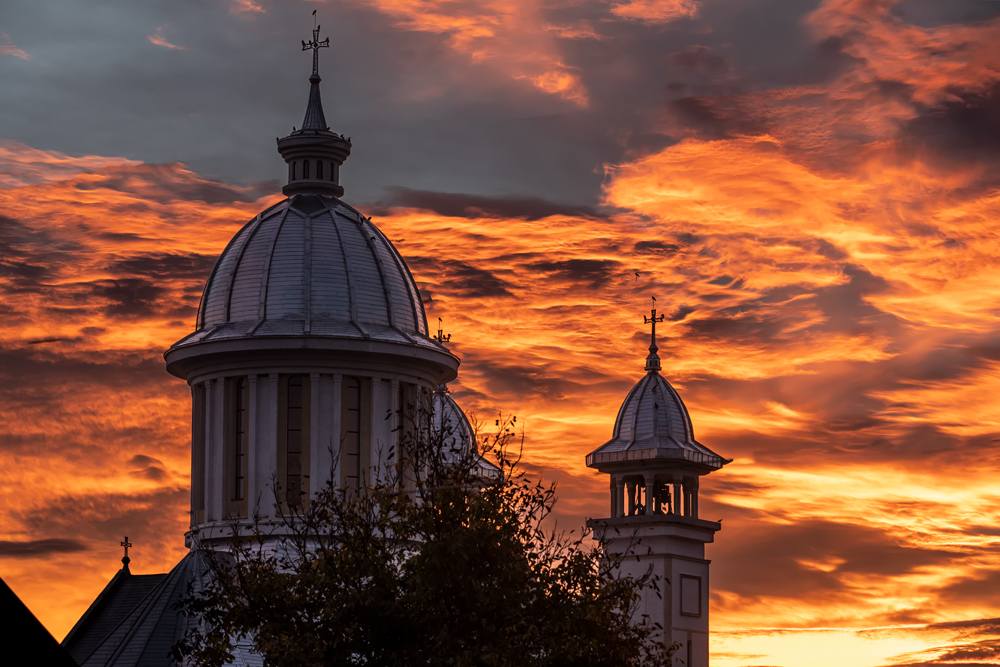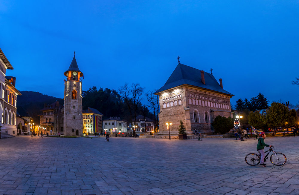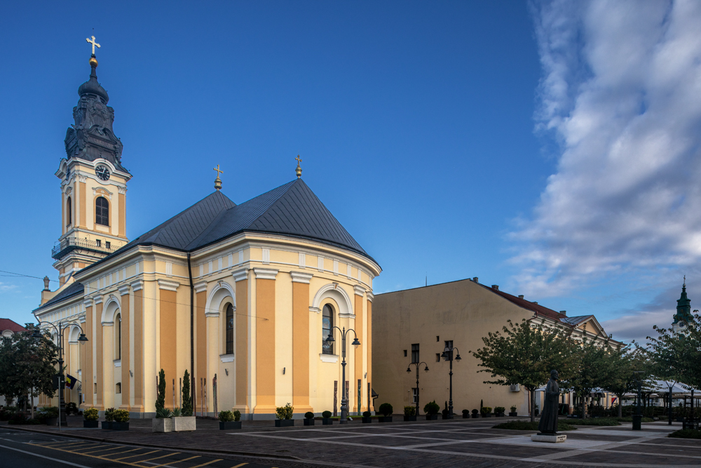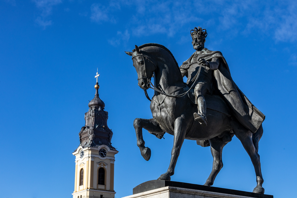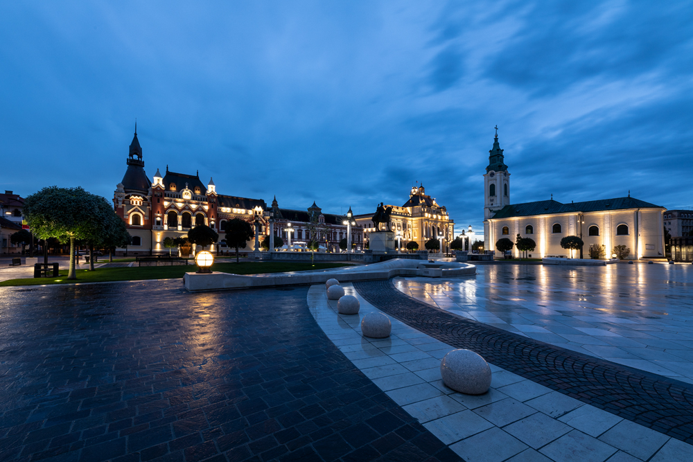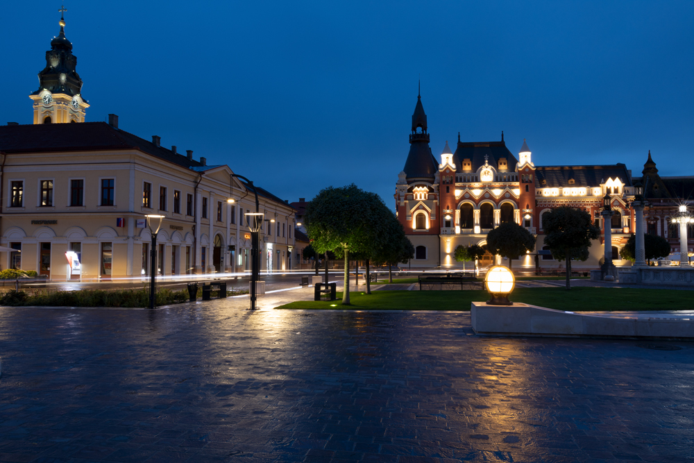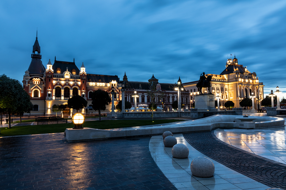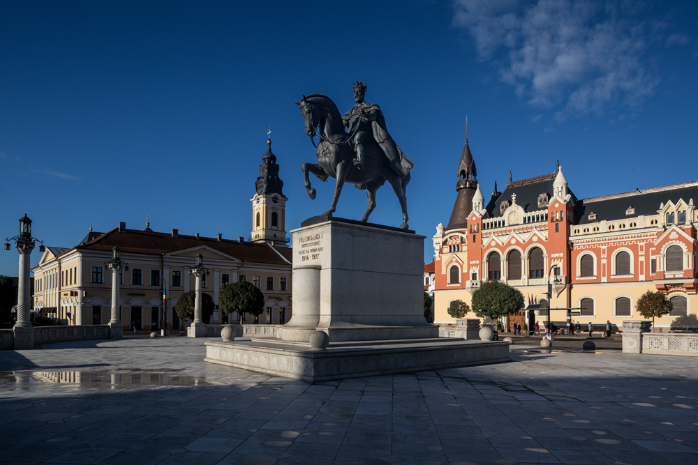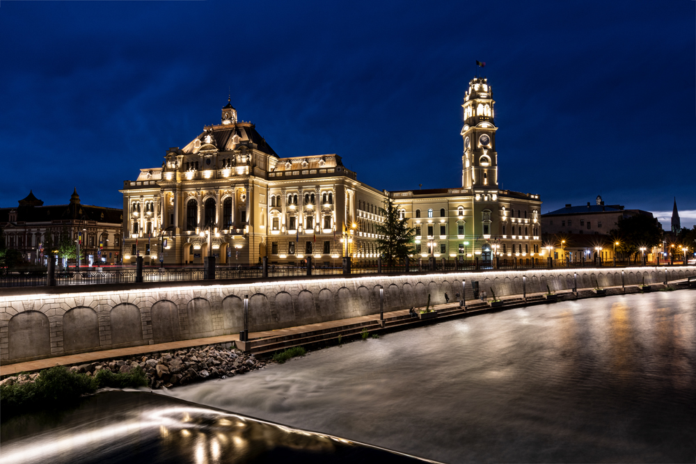 Oradea ist ein wahrlich architektonisches Schatzkästlein, Verwaltungssitz des Kreischgebietes und nur wenige Kilometer von der ungarischen Grenze entfernt. Durch das Stadtzentrum fließt die „schnelle Kreisch“. Mein erster Eindruck, und der trügt bekanntlich nicht, – „gepflegt und sauber“. Ich baue mein Stativ mitten auf dem Platz der Einheit auf. Gesäumt wird der Platz von Gebäuden aus dem 19. Jahrhundert, der barocken Nikolauskirche und der orthodoxen Kathedrale, der Mondkirche, dem Rathaus, dem Moskovitz Palast, dem Hotel Schwarzer Adler und in der Mitte das Reiterstandbild von Mihai Viteazul. Als die Lichter angehen, ist es wie in einem Märchen. Das Licht taucht die eben noch kühle Kulisse wie von Zauberhand in ein Wunderland. Am anderen Ende des Platztes sehe ich meinen Freund Daniel, der bislang all meine Rumänien-Reisen geplant und organisiert hat; mit beiden Armen winken. Auch er weiß um die Magie der blauen Stunde und wie schnell diese kurze Zeit zu Ende geht. Von der Brücke über die Kreisch hat man einen traumhaften Ausblick auf das neoklassizistische Rathaus mit seinem Uhrenturm und beides spiegelt sich im Wasser des Flusses. … noch so eine „unerwartete Freude“.