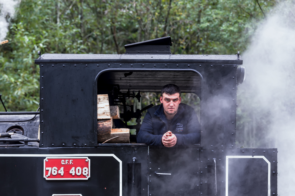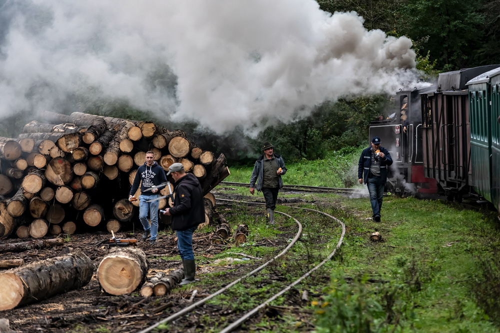 Aber das Verhalten der meisten Menschen ist vorhersehbar. Nach 2 ½ Stunden in Paltin spielt die Musik, es wird getanzt und es gibt ein Barbecue. Bauch siegt über Kopf. Während die meisten Mitfahrer sich an den Fleischtöpfen und Bierbuden laben, komme ich zu den Fotos, die ich brauche, denn die Lok muss für die Rückfahrt „gewendet“ werden. Ich habe mich auf einer Lichtung im Wald postiert, wo die Gleise eine Kurve beschreiben. Als der Lokführer mich winken sieht, schaltet er nicht nur die Positionslaternen ein und lässt das Horn erschallen, er gibt auch noch eine Portion „Extra-Dampf“. Nach 6 Stunden auf der „rumän’schen Eisenbahn“ laufen wir wieder im Bahnhof von Vișeu de Sus ein. Das Wetter hat aufgeklart und zwischen den hohen Wolkentürmen drückt sich die Sonne durch.