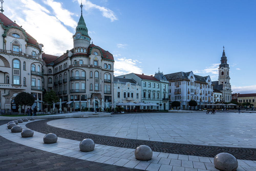 Oradea ist eine wahre Perle. Grüne Parkanlagen, lebensgroße Bronzestatuen. Jugendstilarchitektur und Neoklassizismus wechseln sich ab. Neben dem Prunkbau des Teatrul Regina Maria erstrahlt das frisch renovierte Grand Hotel Astoria in altem Glanz. Man sollte sich Zeit nehmen für Oradea, sich in eines der vielen Straßencafés setzen und das Leben an sich vorbeiziehen lassen, denn wer sich Zeit nimmt, wird feststellen, dass die Sanierung der Gebäude häufig nur oberflächlich ist. Manchmal eben nur eine frischgetünchte Fassade, sozusagen ein wenig „Potemkin an der Kreisch“.