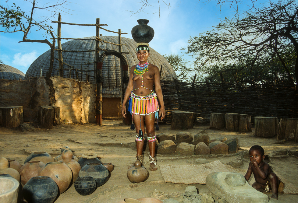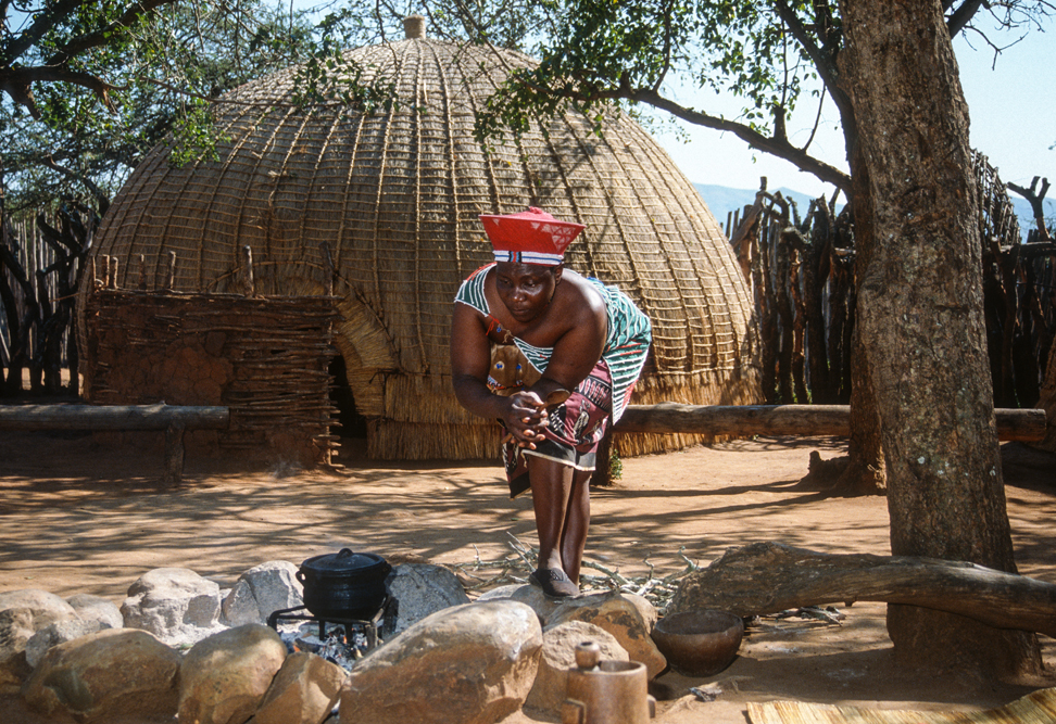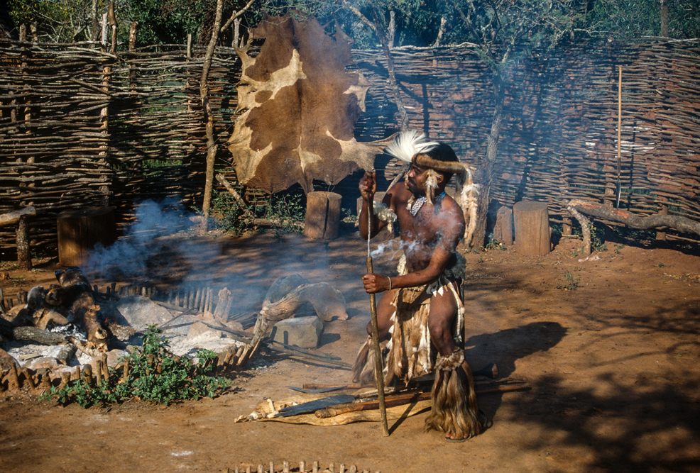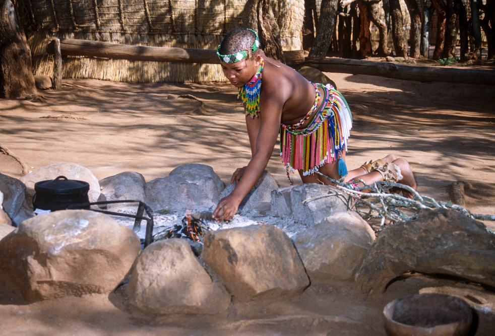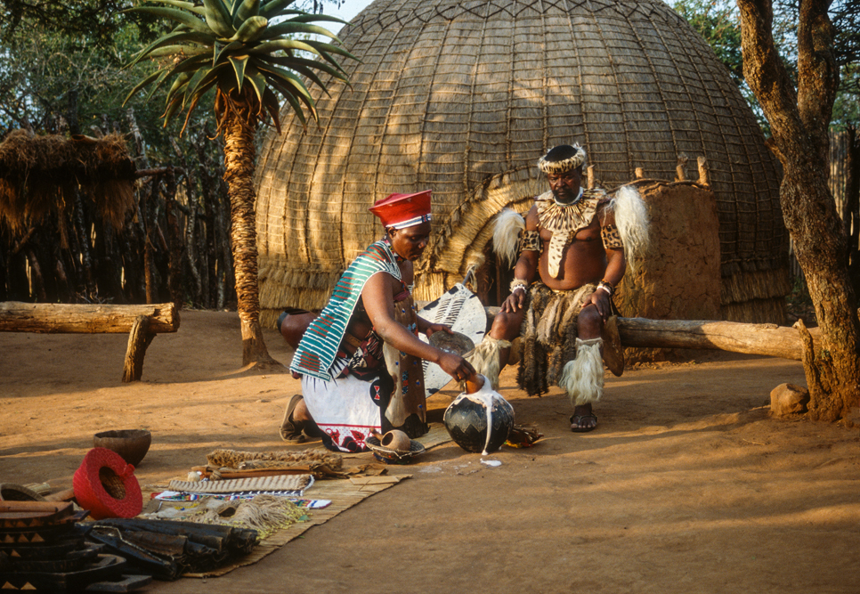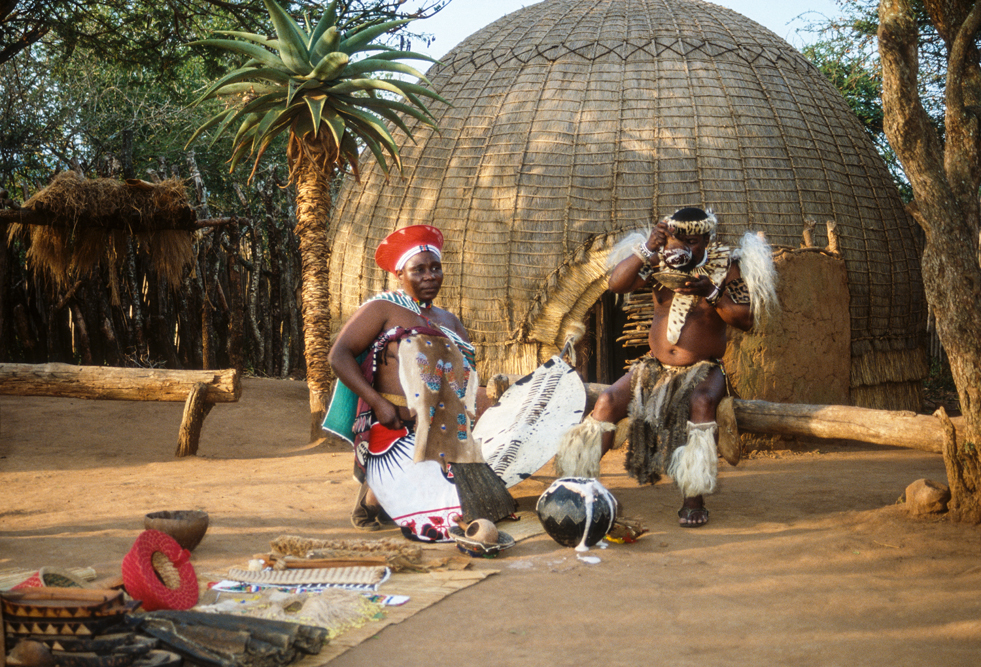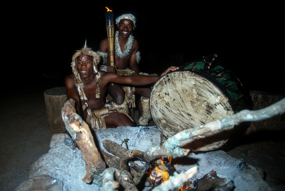 Am frühen Morgen, steht ein Sänger mit Gitarre, vor der Tür meiner Hütte und weckt mit „Shosholoza“, dem Lied der afrikanischen Bergarbeiter. Nach dem Frühstück, erwacht auch das Leben in der kleinen Zulu-Siedlung auf dem Hotelgelände. Es ist eine Art Freilichtmuseum. Hier werden traditionelle Tänze zu dröhnenden Trommelklängen aufgeführt, es wird Hirsebier gebraut, ein Sangoma führt in die Heilkunst der Medizinmänner ein und Frauen sitzen beieinander und ziehen Perlen auf Schnüre, aus denen kunstvolle Kleider gemacht werden.
