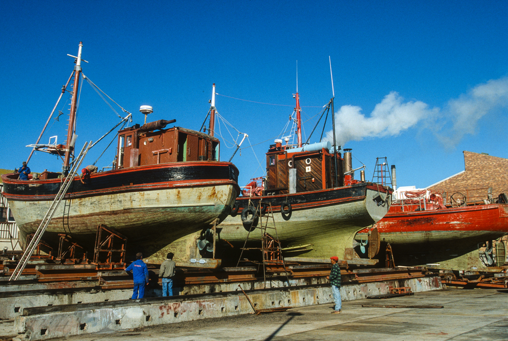 Auf einer gut ausgebauten Straße erreicht man den kleinen Ort Lamberts Bay am Atlantik. Von weitem verbreitet eine Fischfabrik bereits Ihren Gestank ! – Ob dieser Geruch jedoch der Lockstoff ist, für die zigtausend Kaptölpel, die auf der kleinen Bird Island ihre Brutplätze haben – wer weiß ? Lamberts Bay lebt vom Fisch. In dem kleinen reizvollen Fischereihafen liegen die Boote der Küstenfischer, und die Pier ist gesäumt von Fischrestaurants, die das Frischeste vom Frischen offerieren.