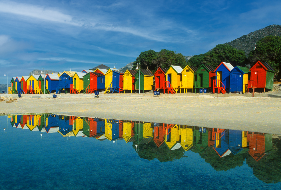 Von Kapstadt aus bieten sich viele Tagesausflüge an, zum Beispiel in die Buchten rund um’s Kap, von denen St. James Bay, mit seinen bunten Badehäuschen die fotogenste ist. Ich mache eine Tour durch das Weinland. Groot Constantia, vor den Toren Kapstadts, war das Heim des Gouverneurs Simon van der Stel. Im kapholländischen Baustil sind Herrenhaus und Kellereigebäude errichtet. Nicht weit ist es nach Franschhoek und Stellenbosch, hier wachsen Reben, die zu Chardonnays oder Cabernet Sauvignons von Weltruf heranreifen. Die Weingüter, die mittlerweile zum großen Teil im Besitz großer internationaler Konzerne sind, hat man schön herausgeputzt. In traumhafte Parklandschaften eingebetet, liegen strahlendweiß, kleine Juwelen gleich, die Häuser der Herren, der Sklaven und die Weinkeller. Gesäumt sind die Kieswege von Pfingstrosen und Proteen.
