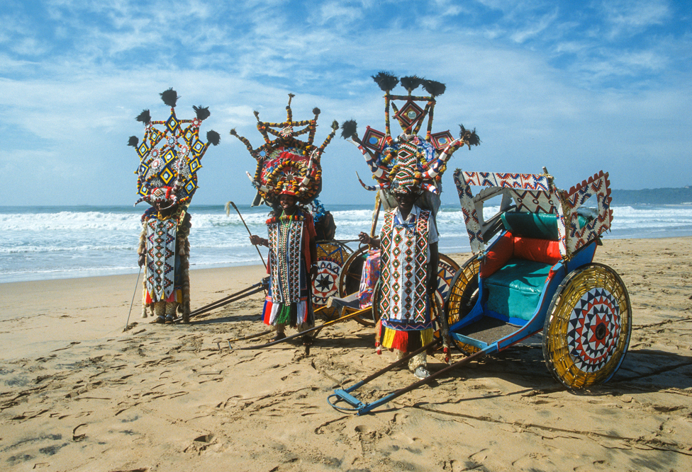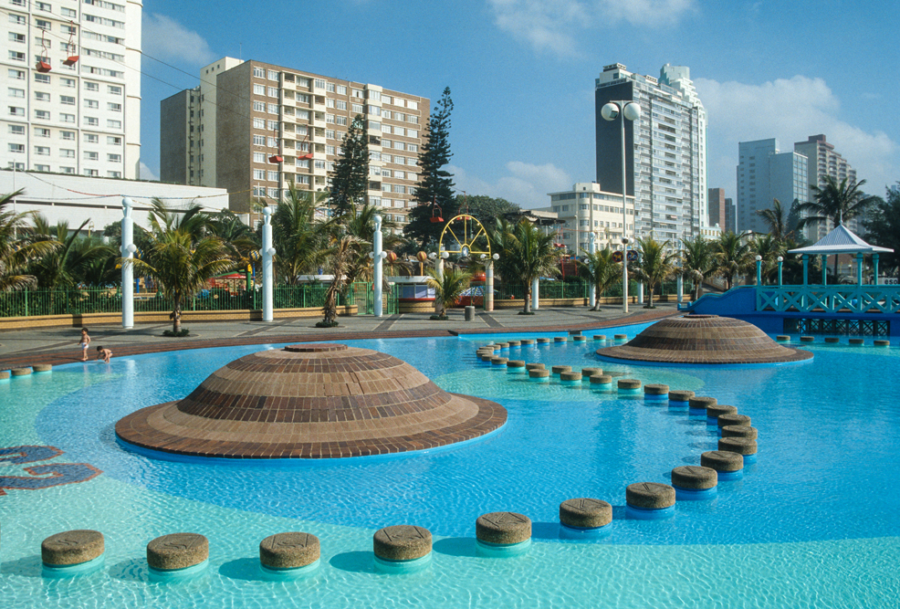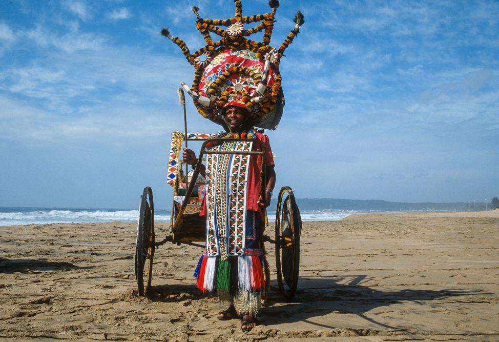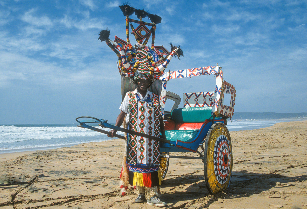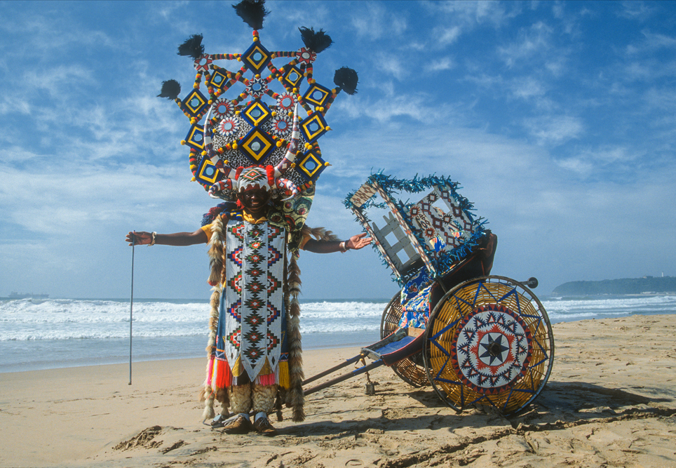 Ein wenig von meinem Herzen, bleibt auch hier, als ich am kommenden Morgen das Flugzeug nach Durban, der Hauptstadt der Provinz Natal besteigen. Nach dem historischen Boden Kapstadts, ist Durban ein kleiner Kulturschock, Urlaubsmetropole am Indischen Ozean. Entlang der 6 km langen Golden Mile, reiht sich ein Hotel an das nächste. Zunächst bin ich enttäuscht, doch auch Durban hat seine spannenden Seiten, zum Beispiel die Markthallen, wo das Bild von scharfen Gewürzen und indischen Händlern geprägt wird. Die Inder, die heute hier leben, sind Nachfahren der Coolies, die im 19. Jahrhundert der Armut ihrer Heimat entflohen und sich in Natal als Tagelöhner auf den Zuckerrohr- plantagen verdingten. Asiatischen Ursprungs sind auch die Rikschas, die man häufiger im Straßenbild sieht. Afrikaner in prächtigen Phantasiekostümen ziehen die bunt geschmückten Gefährte über die Prachtboulevards.