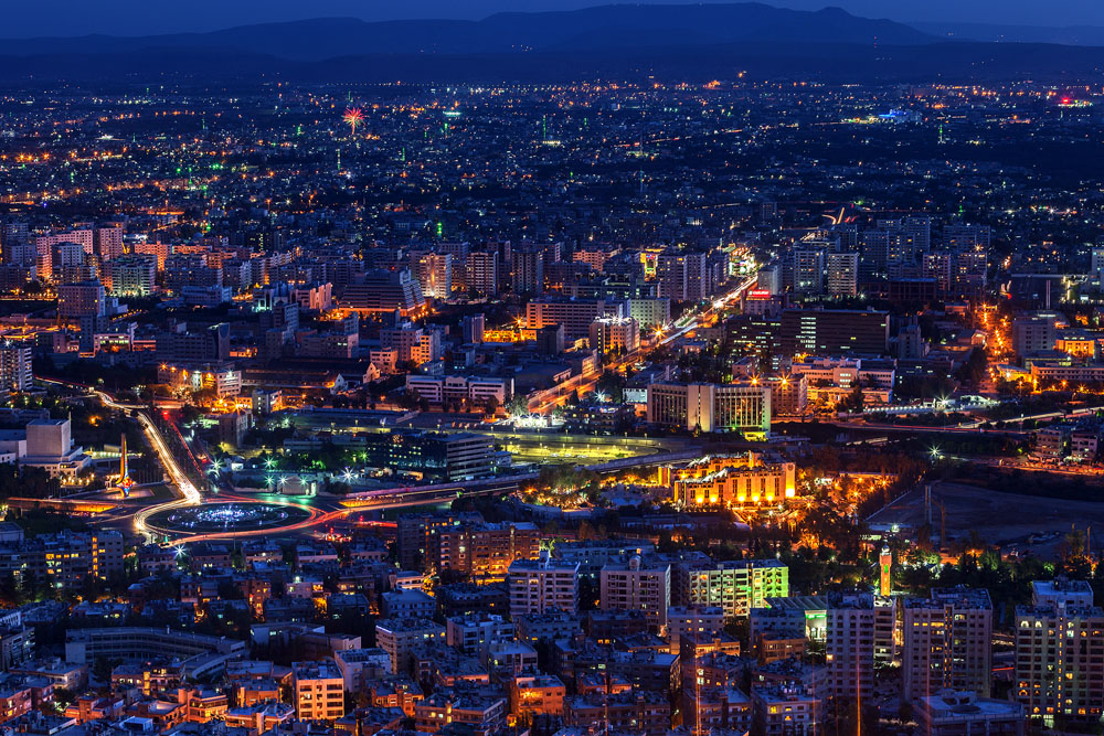 Als die Sonne sich senkt und die Schatten länger werden, machen wir uns auf den Weg zum Aussichtsplateau auf dem Djebel Qassyun. Von hier hat man einen traumhaften Blick über die Stadt. In der Ferne sieht man die Omajjaden-Moschee, und ganz nah, nicht weit von der Residenz des Präsidenten erblickt man die Minarette der Tekkiye Sulaimaniye gleich neben dem Nationalmuseum. Als die Dämmerung hereinbricht und Lichter in die Stadt erleuchten, wird mir klar, warum Damaskus so viele Beinamen hat. Damaskus Perle des Morgenlandes, Braut der Erde, die Duftende – Mutter aller Städte.