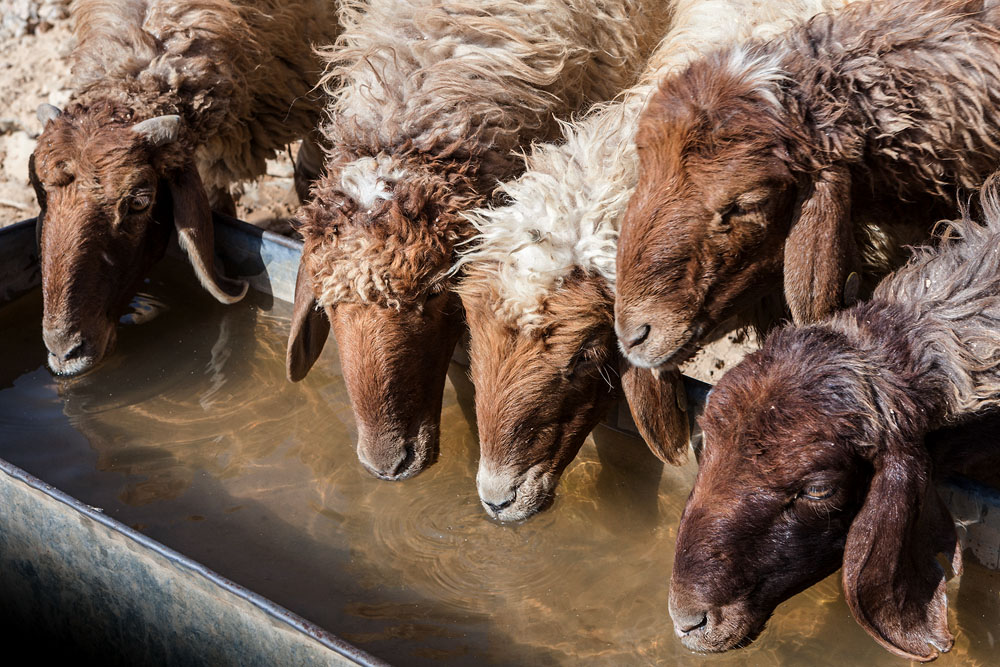 Nahe an der Straße haben Beduinen Ihre Zelte aufgeschlagen. Wir halten an und es gibt wieder Tee; zu dem man immer eingeladen wird – das gebietet schon das muslimische Gebot der Gastfreundschaft. Zunächst will kein echtes Gespräch in Gang kommen. Was werden diese Leute von uns denken ? Kamerabehängte Europäer dringen in unsere Welt ein – was wollen die überhaupt hier ? Der Hausherr sitzt im Schatten des Zeltes, Teekessel und Glas vor sich, aber auch das Handy. Auch hier hat die Moderne Einzug gehalten. Schließlich muss man wissen, wie die Fleischpreise auf dem Basar in Damaskus stehen. Soll man Schafe und Kamele heute verkaufen oder lieber doch erst später ?