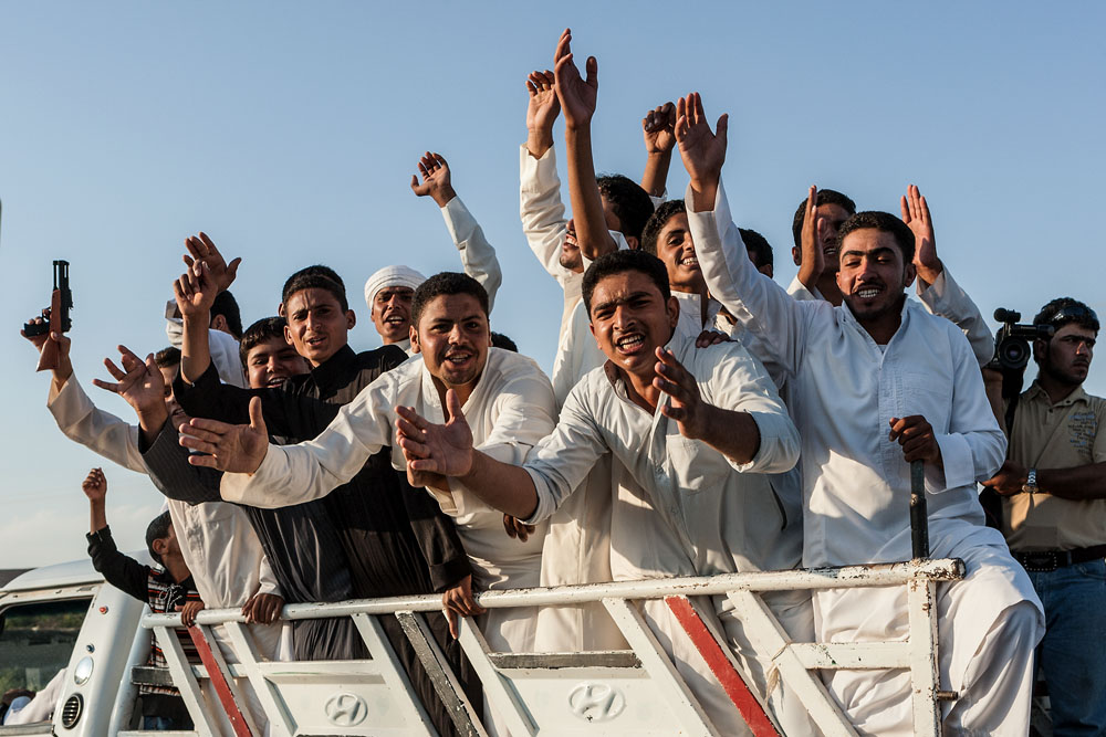 Am nächsten Morgen brennt die Sonne schon früh vom Himmel. Wir machen unseren Weg entlang des großen Stroms, der an einigen Stellen mehrere hundert Meter breit ist. Wir winken den Fischern die Ihre Netze auswerfen, und werden wie überall in Syrien freundlichst zurück gegrüßt. Wo immer wir am Straßenrand halt machen um zu fotografieren werden wir schnell von Neugierigen umringt und gelöchert. Sei es von den Buben, die von Ihren Eltern zum Ziegenhüten geschickt wurden oder jenem Raubgräber der mich allen Ernstes fragte, ob ich ihm nicht einen Metalldetektor aus Deutschland schicken könne, die seien in Syrien so schwer zu bekommen.