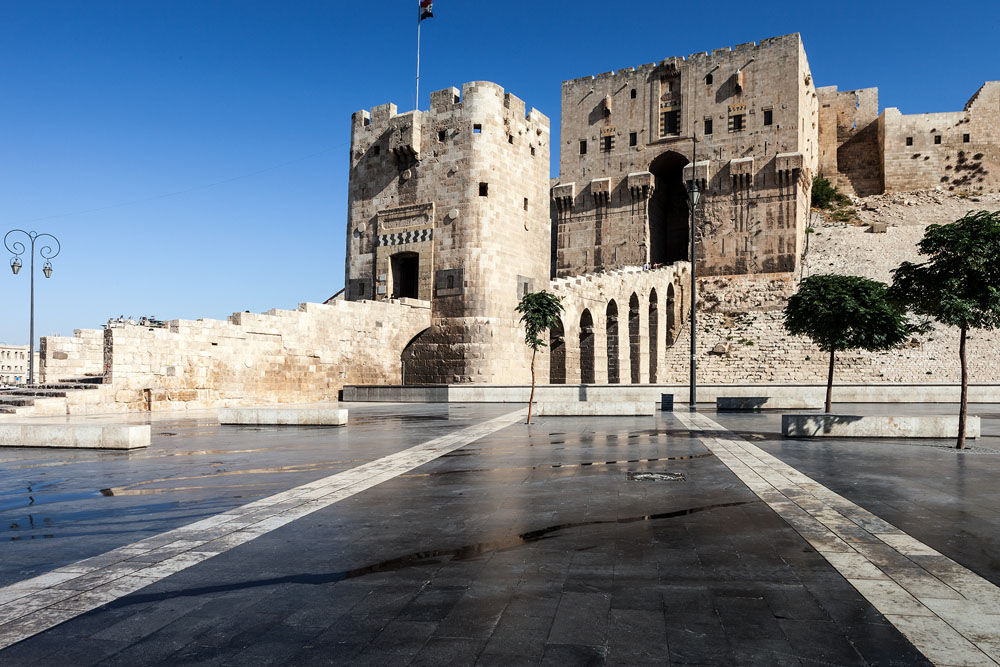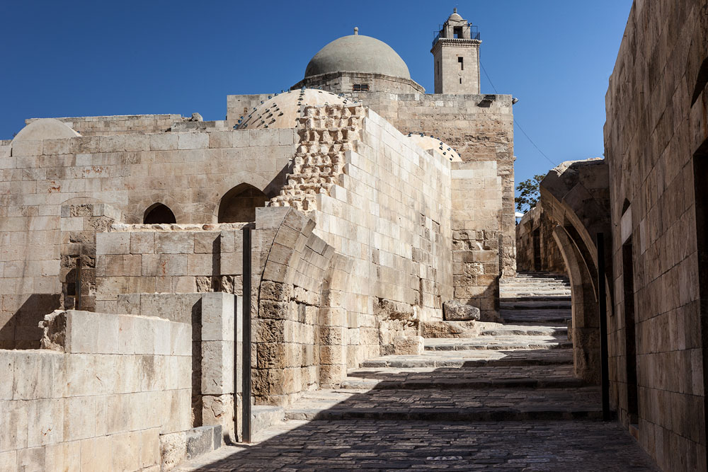 Bevor wir uns auf diesem Marktplatz umschauen, wollen wir uns zuerst einen Überblick über die Stadt verschaffen. Den besten Blick hat man von der prächtigen Zitadelle, die einst Residenz der Mamelukkensultane war. Hier oben auf dem Burgberg soll Abraham, den zwei Weltreligionen als Stammvater verehren, seine Ziegen gehütet und gemolken haben. Der Legende nach sollen Abrahams Nachbarn allmorgendlich nach der Milch gefragt haben: „Ist schon gemolken? oder Halaba ya la ?“. So soll die Stadt zu ihrem semitischen Namen gekommen sein: Halab.