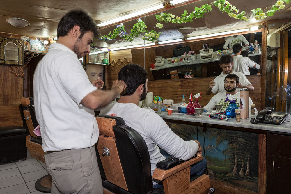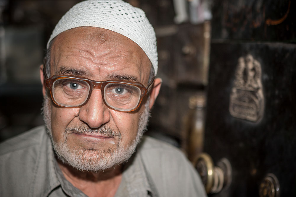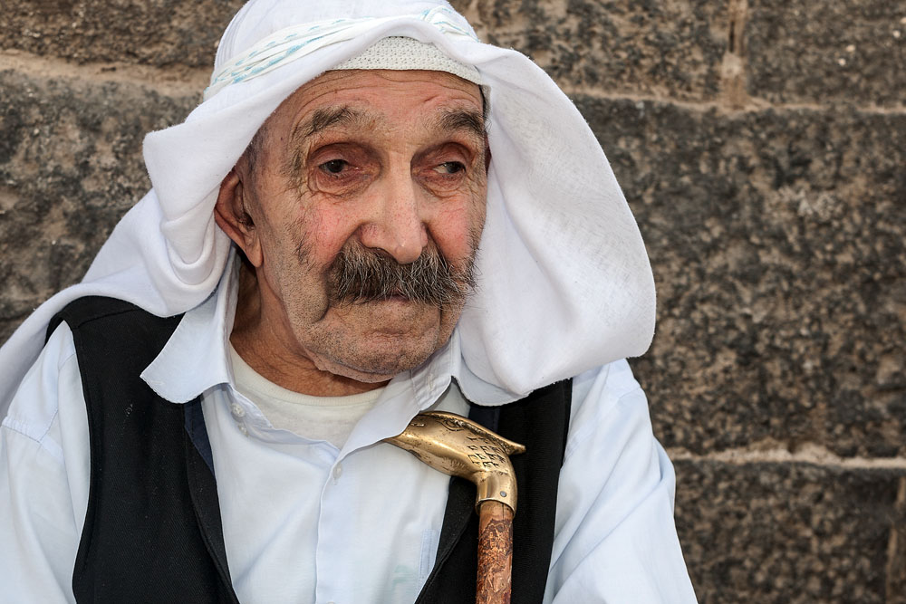 Wir sind auf dem Rückweg von Bosra nach Damaskus nach Suwaida gefahren. Das liegt auf dem Weg. Wir schlendern ein wenig durch die Gassen der Stadt, die wenig Aufregendes bietet. Man kommt schwer in Kontakt mit diesen Menschen die gerne unter sich und Ihresgleichen bleiben. Das einzige Erlebnis, welches mir vom Besuch in Suwaida in Erinnerung bleiben wird, ist ein alter Mann, der auf einem Stuhl vor der Tischlerei seines Sohnes sitzt. Ich frage, ob ich ihn fotografieren darf. Er nickt stumm. Als ich ihm das Bild auf dem Display der Kamera zeige, strahlt er mich an, segnet mich, drückt mich an die Brust und küsst mich auf die Wange.