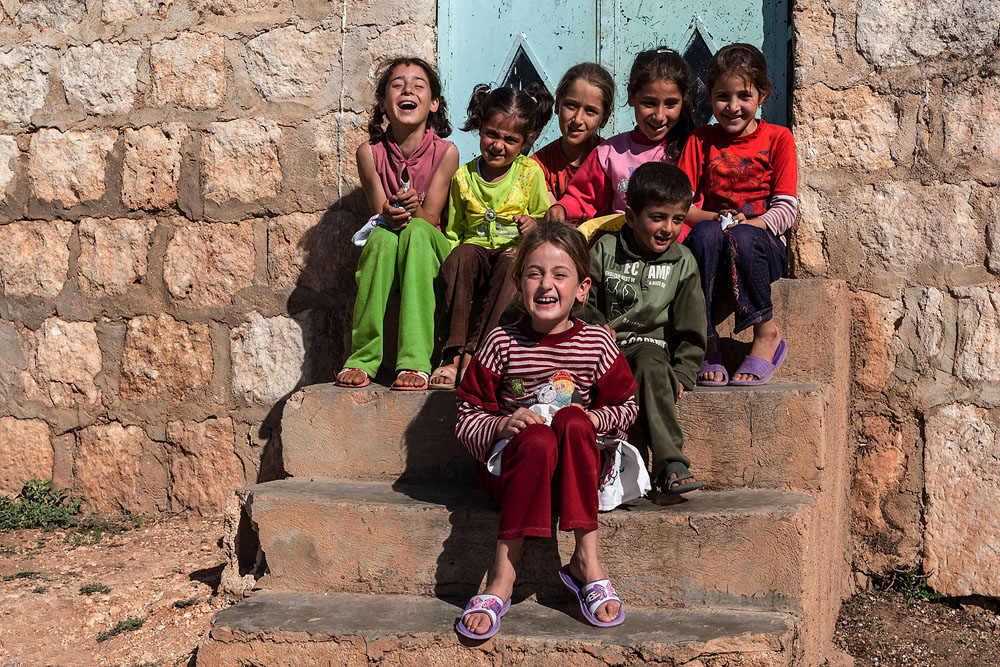 Die Gegend rund um Idlib in der auch das Simeons-Kloster liegt; bis hin zur Grenze der türkischen Provinz Antakya ist fruchtbares Land. Die besten Oliven kommen von hier. Als wir weiterfahren sehe ich auf einem Feld Bauern bei der Paprikaernte. Dem Farbenspiel kann ich nicht widerstehen. Wir halten und machen uns mit Händen und Füßen verständlich, bis Ahmed uns zur Hilfe eilt. Schnell ist die Brücke geschlagen. Der Bauer hat die ganze Familie eingespannt, Bruder, Frau, Kinder, Schwägerin, Cousin, Nichten und Neffen. Alle müssen mithelfen um das Familieneinkommen zu sichern. Ein riesiger Haufen des roten Gemüses liegt bereits in der Mitte des Feldes und wird in Säcke verpackt um auf den Märkten zwischen Aleppo und Homs feilgeboten zu werden. Es wird eine ausgelassene Fotosession an der Alle Ihren Spaß haben; doch die Beschenkten am Ende, das sind wir ! Es sind uns nicht nur gute Fotos gelungen, sondern wir tragen auch einen Sack Paprika nach Hause.