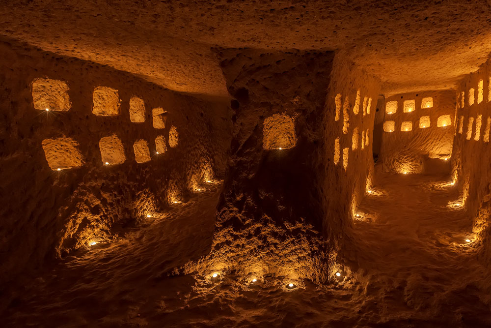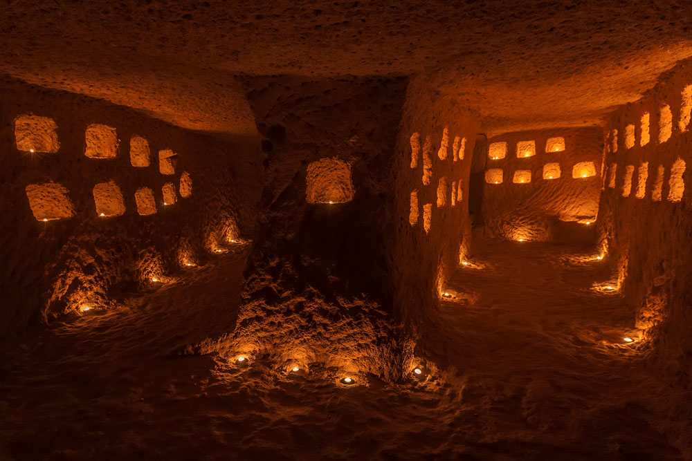Ismail käme nie auf den Gedanken, einem Gast eine erfüllbare Bitte abzuschlagen. Unter dem Balkon gibt es ein Taubenhaus, aus dem die letzte Taube schon lange ausgeflogen ist; würden diese „Dreckspatzen“ doch den Gastbetrieb nachhaltig beeinträchtigen. In meinem Kopf hat sich eine photographische Idee festgesetzt. Ich möchte die einzelnen Taubenschläge gerne für eine stimmungsvolle Nachtaufnahme mit „Teelichtern“ ausleuchten. Als ich Ismail den Plan erkläre und um Erlaubnis frage, zieht er nur die Augenbrauen hoch und zweifelt wahrscheinlich an meinem Geisteszustand. Als ich abends mit einem Karton mit 100 Teelichtern, Stativ und der schweren Ausrüstung anrücke, versteht er aber, dass das mein bitterer Ernst ist.