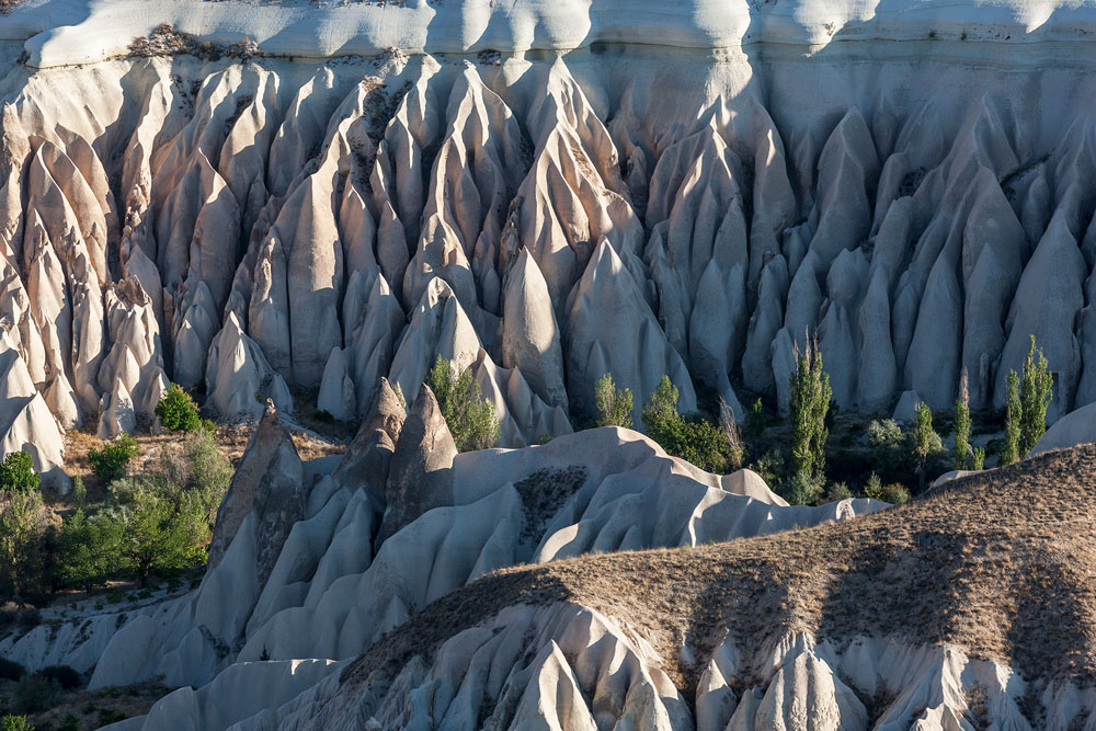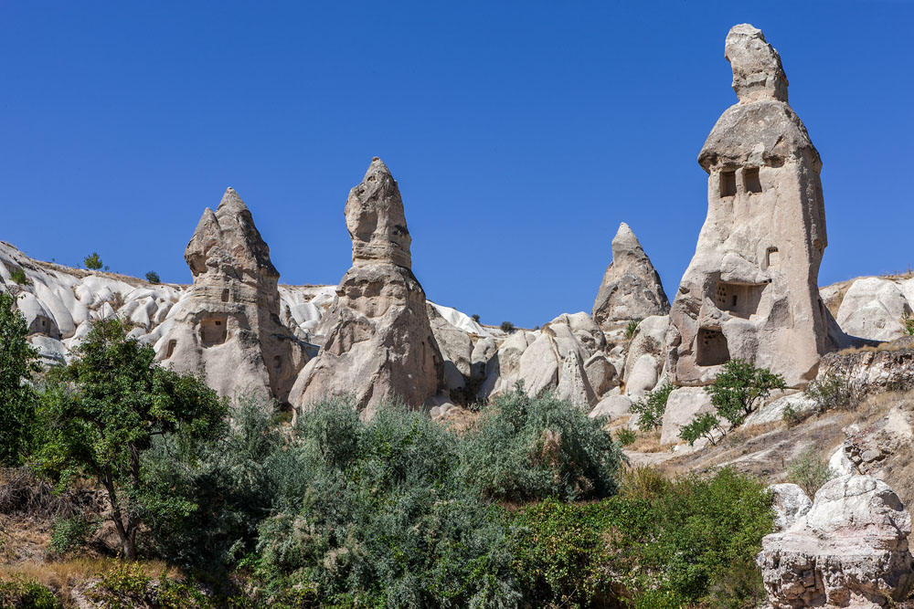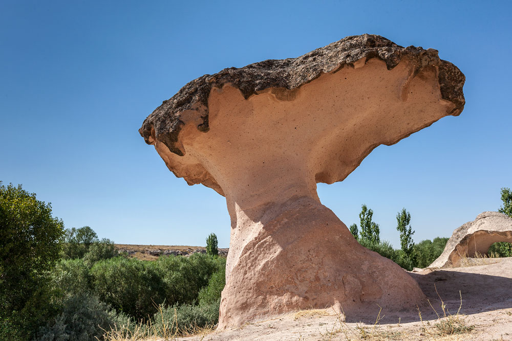 Wer auf der Rückfahrt noch ein Zuckerl sucht, sollte unbedingt in Selime Rast machen. Selime liegt am Nordwestende des Ilhara-Tals. Im Tal findet man Felskegel und Feenkamine, die jenen von Göreme an Schönheit in nichts nachstehen.