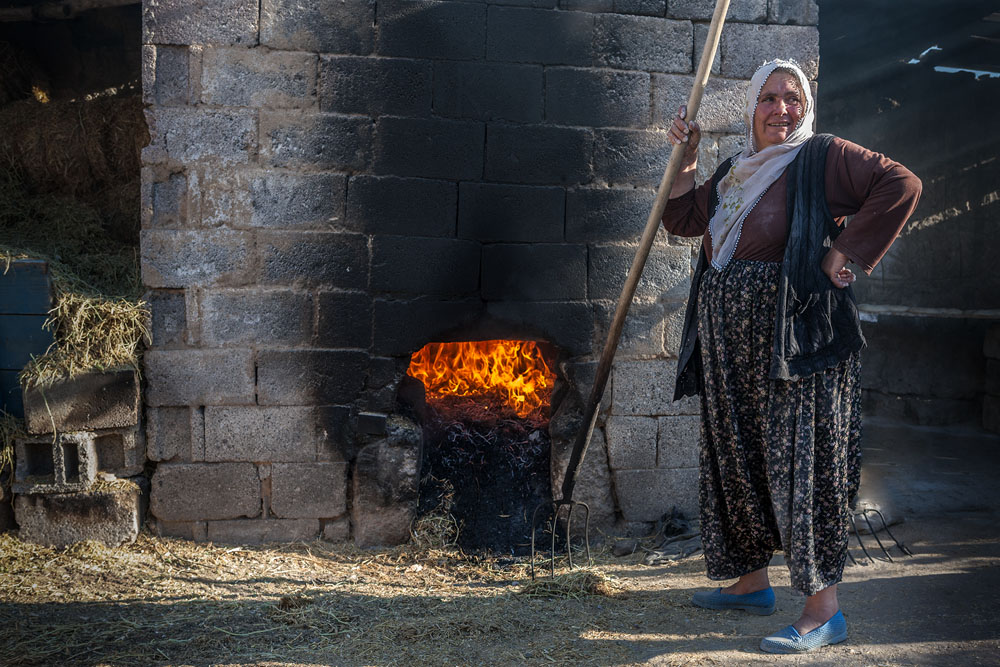 Am Ende der Dorfstraße steigt eine dünne schwarze Rauchsäule in den spätnachmittäglichen Himmel. Neugierig gehe ich dem nach und schon bald steigt mir der Geruch von frischgebackenem Brot in die Nase. Gastfreundlich werde ich willkommen geheißen und bin mit meiner Kamera schnell mittendrin und bald schon zentraler Punkt des Geschehens. Wann kommen schon einmal Fremde nach Maziköy ? Wahrscheinlich habe ich den ganzen Ort fotografiert, – Kinder, Oma’s und Opa’s die Bäckersfrauen; – einfach alle kommen vorbei. Auch hier entstehen Photos, die immer in Erinnerung bleiben werden. Als ich aufbreche habe ich nicht nur 2 frische, knusprige, wohl duftende Fladenbrote im Rucksack, sondern auch das Versprechen im nächsten Jahr wiederzukommen und die Photos mitzubringen.