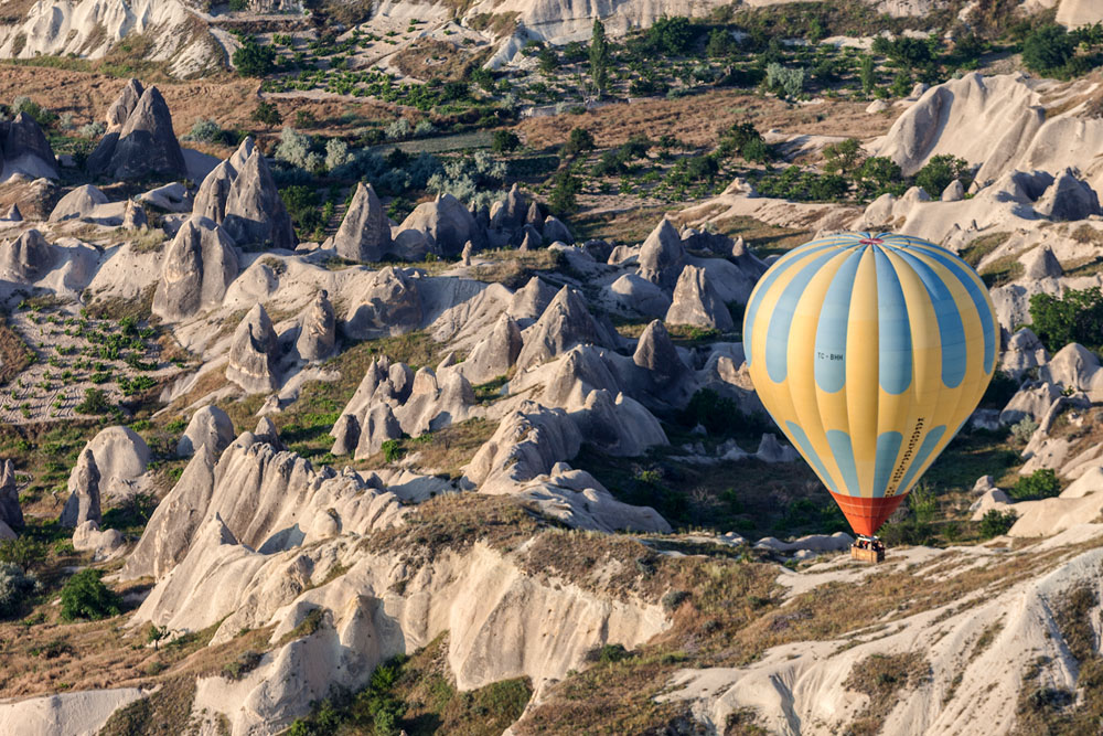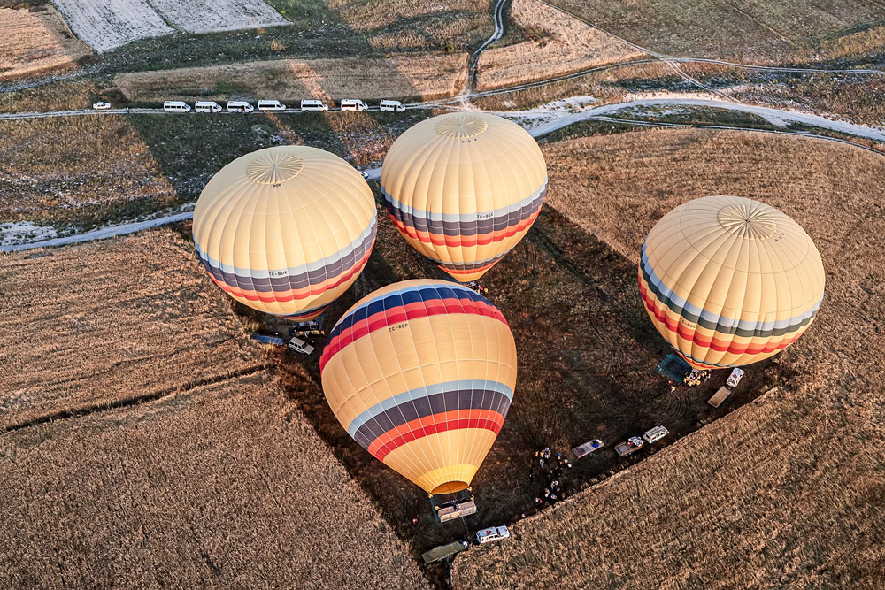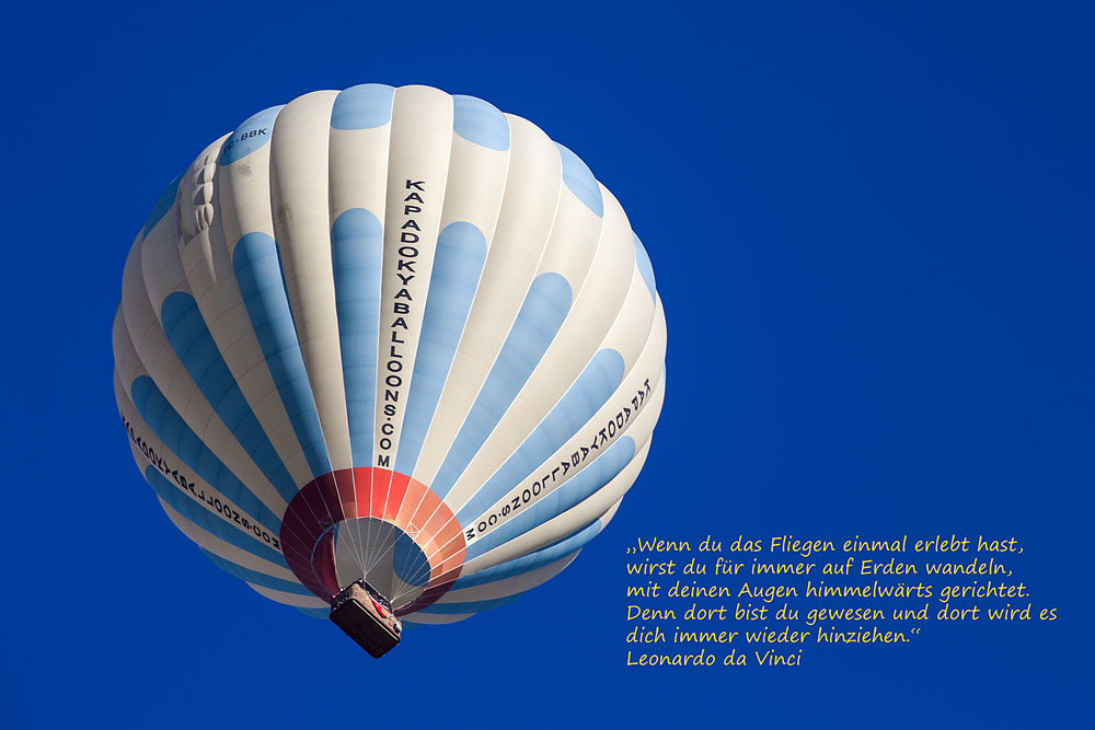 Wie Tränen hängen Sie am Himmel, die Ballons, die allmorgendlich rund um Göreme aufsteigen. Doch der liebe Gott weint allerhöchstens Freudentränen, wenn er die Wunderwelt seiner Schöpfung von oben durch die Augen der Ballonfahrer betrachtet. Auch für jemanden der viel von der Welt gesehen hat, ist eine Ballonfahrt am Himmel über Kappadokien etwas Besonderes, Einmaliges. Jeden Morgen; – lange vor Sonnenaufgang zwängen sich die Kleinbusse, der Ballooning-Unternehmen durch die engen Gassen von Ürgüp, Göreme und Uçhisar um ihre Klientel einzusammeln. Parallel dazu quälen sich Landrover mit Trailern und den Ballonkörben zu den Startplätzen im Gelände. Unzählige Ballooning-Unternehmer haben sich in der Region angesiedelt. Lars-Eric Möre und Kaili Kidner starteten mit Kapadokya-Ballooning den Boom im Jahr 1991. Kapadokya zählt auch heute noch zu den Unternehmen, die man ruhigen Gewissens empfehlen kann. Zwischenzeitlich tummeln sich aber neben Alla Turca, Anatolia, Butterfly, THK, Atmosphere, Royal und Voyager noch viele andere Farben am immer enger werdenden kappadokischen Himmel. Das hätten sich Joseph und Jacques Montgolfier sicher nicht träumen lassen, als sie am 21. November 1783 mit Ihrer „fliegenden Kugel“ im Schlosspark zu Versailles zum ersten Flug abhoben.