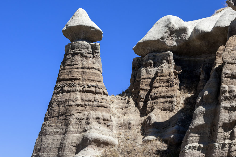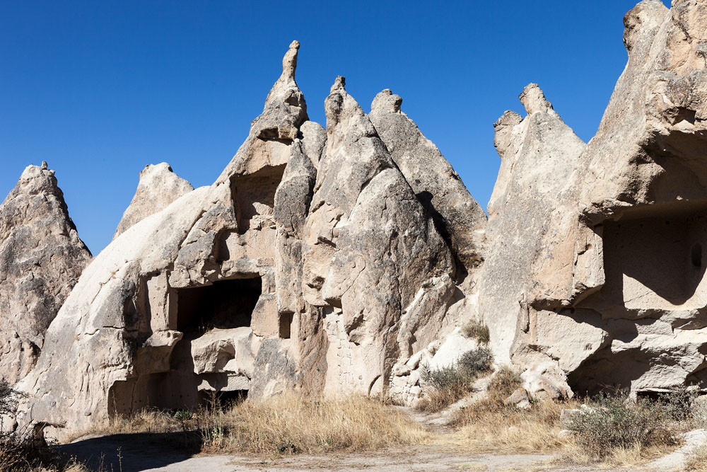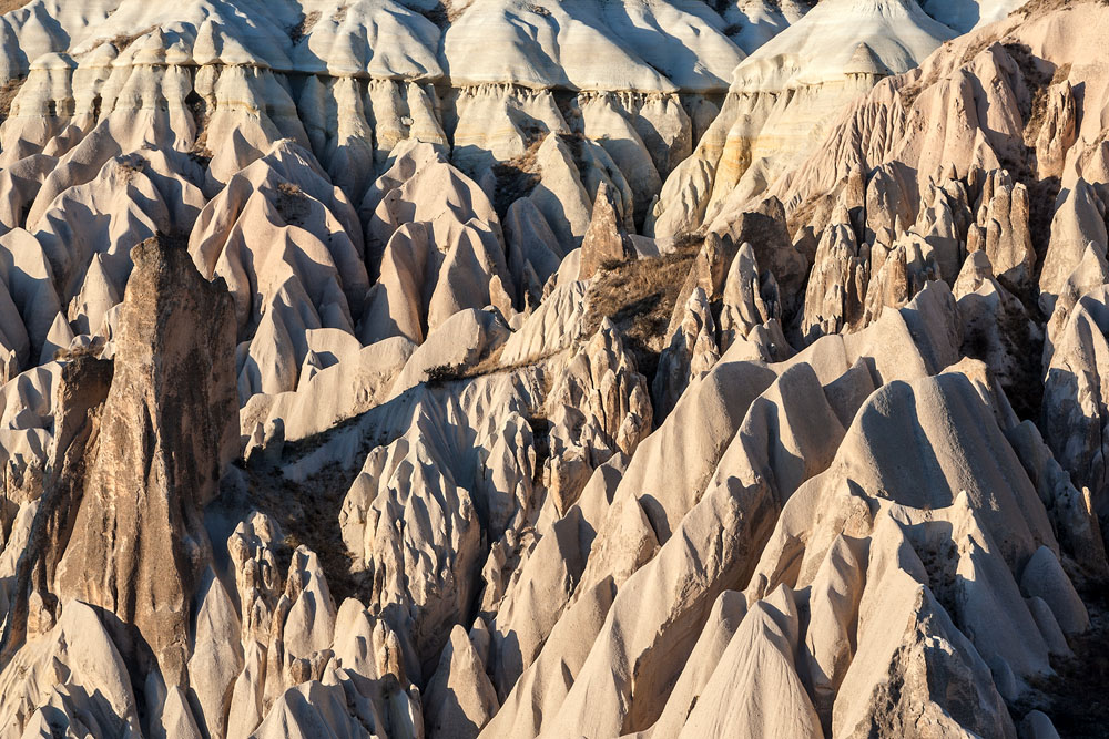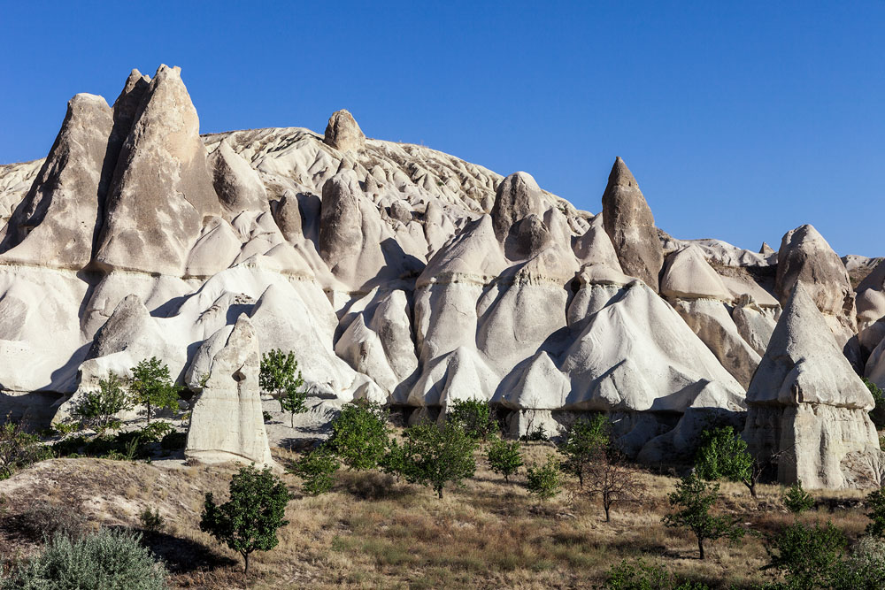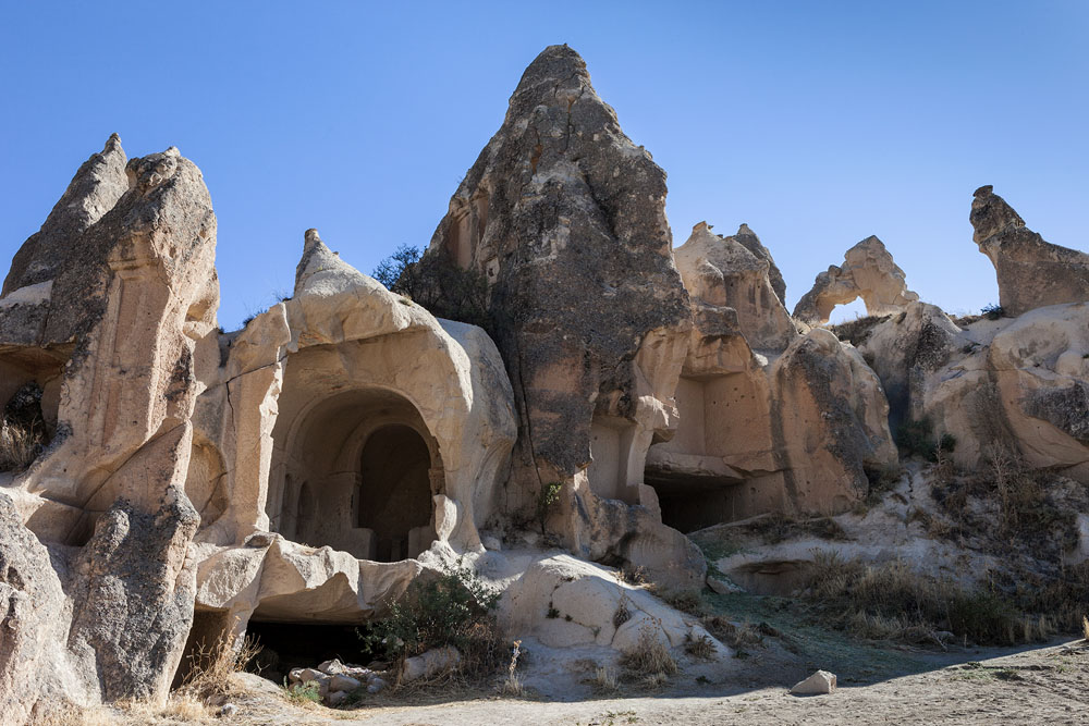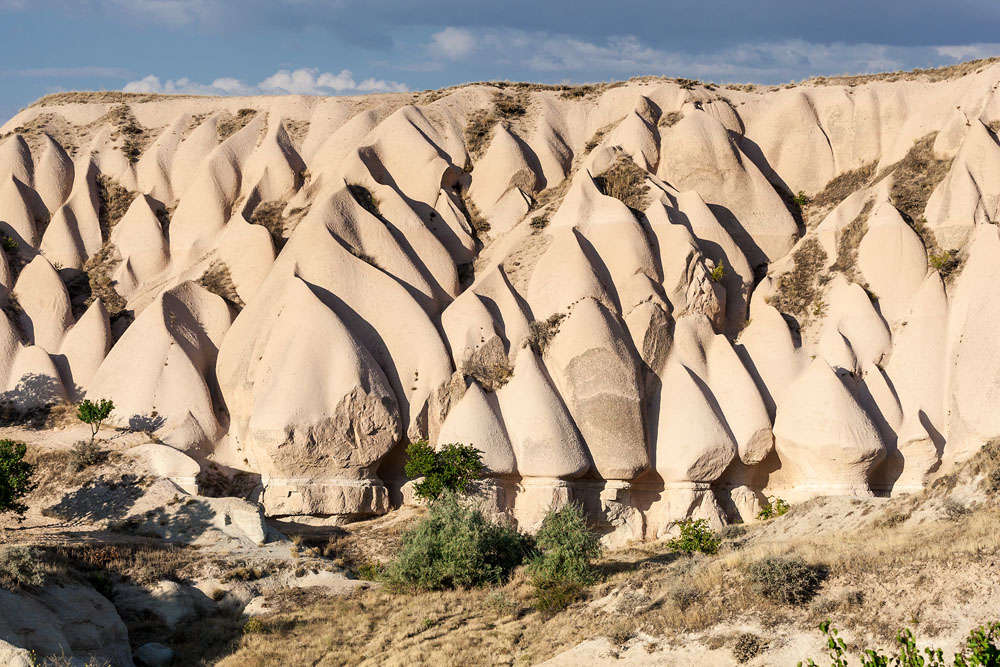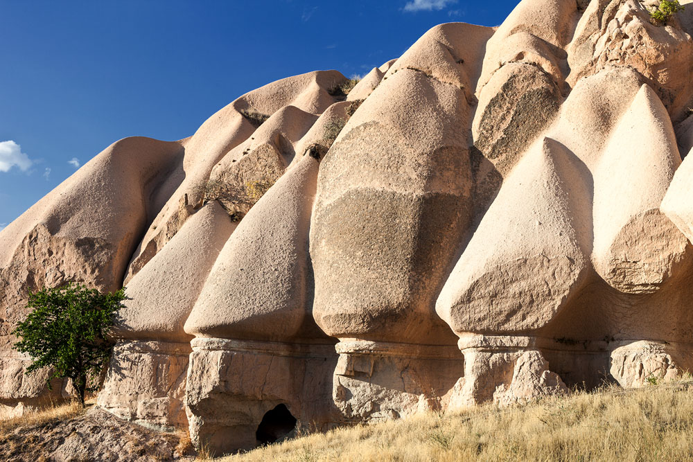 „On the Rocks“ geht es auch weiter, in die Täler Kappadokiens. Felsnadeln und Feenkamine wohin man schaut. Im Pigeon-Valley zwischen Uçhisar und Göreme, im Devrent-, und Kizil Cukur-Valley, an den Zipfelmützentürmen in Paşabaği oder den Tuffstein-Formationen von Güllüdere, die man auch Rose-Valley nennt. Man kann sich nicht satt sehen an Formen, Farben und Strukturen, zwischen breiten Taleinschnitten und engen Schluchten. Erdgeschichtliches wechselt sich ab mit Zeugnissen früher Besiedelung. In schroffen Fels haben Menschen ihre Kirchen, Wohnungen und Stallungen gehauen; zum Schutz vor Feinden nutzten sie die natürlichen Gegebenheiten.
