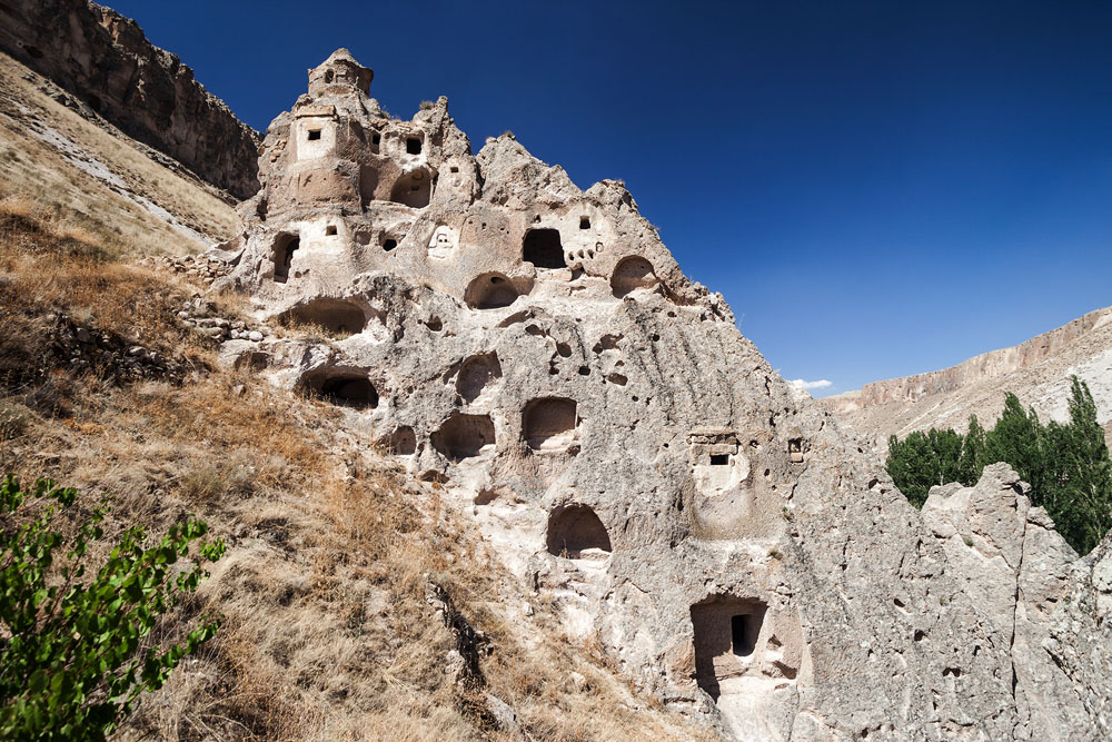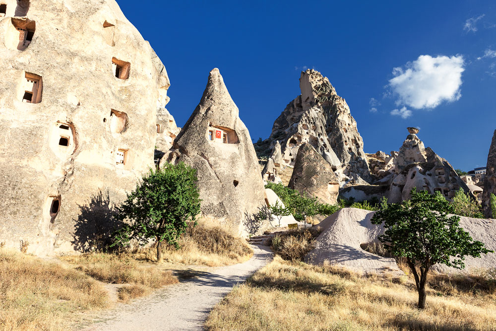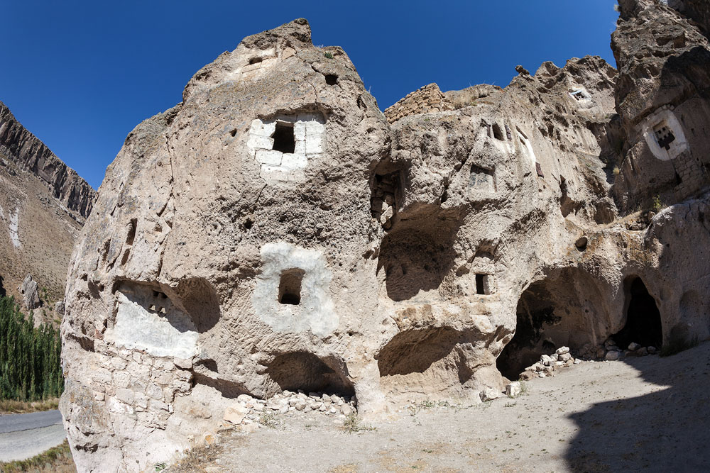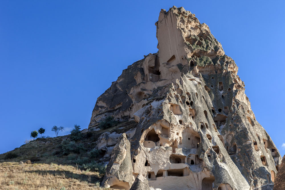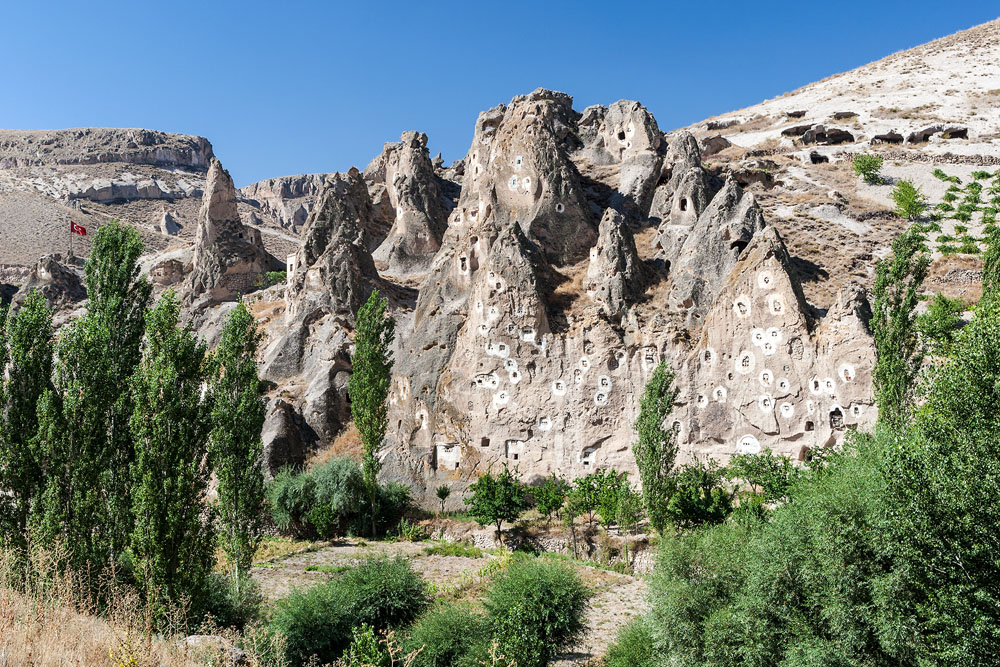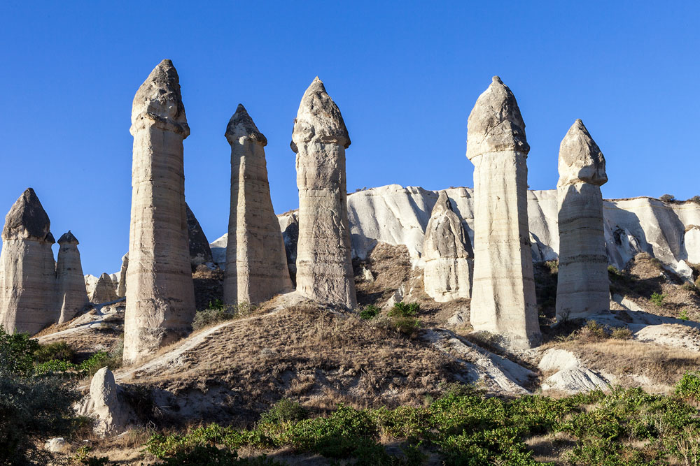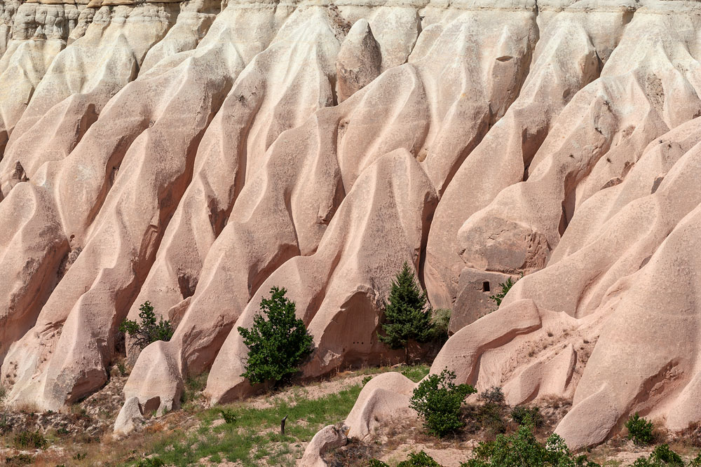 „On the Rocks“ geht es auch weiter, in die Täler Kappadokiens. Felsnadeln und Feenkamine wohin man schaut. Im Pigeon-Valley zwischen Uçhisar und Göreme, im Devrent-, und Kizil Cukur-Valley, an den Zipfelmützentürmen in Paşabaği oder den Tuffstein-Formationen von Güllüdere, die man auch Rose-Valley nennt. Man kann sich nicht satt sehen an Formen, Farben und Strukturen, zwischen breiten Taleinschnitten und engen Schluchten. Erdgeschichtliches wechselt sich ab mit Zeugnissen früher Besiedelung. In schroffen Fels haben Menschen ihre Kirchen, Wohnungen und Stallungen gehauen; zum Schutz vor Feinden nutzten sie die natürlichen Gegebenheiten.