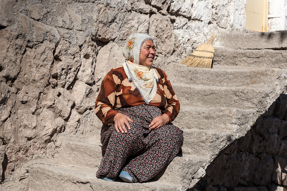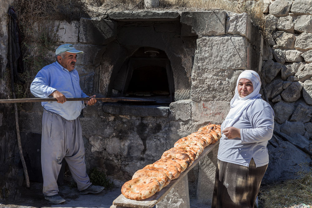 …das heißt soviel wie: „darf ich Sie fotografieren ?“. Auch wenn in der Türkei Gastfreundschaft groß geschrieben wird; wenn man als Fotograf unterwegs ist, gebietet es Anstand und Höflichkeit, dass man fragt, bevor man auf den Auslöser drückt, vor allem wenn man muslimische Frauen ablichten möchte. Selten ist meine Bitte abgelehnt worden, und wenn, dann muss man das akzeptieren. Den größten Gewinn auf meinen Reisen ziehe ich für mich aus den Zusammentreffen mit Menschen, aus den kleinen Geschichten am Rande, an die man sich erinnert, wenn man das Foto dieses Augenblicks wieder betrachtet. Der von mir sehr verehrte Antoine de Saint Exupéry hat einmal geschrieben: „die schönste Freude erlebt man immer da, wo man sie am wenigsten erwartet“. Als wir am späten Nachmittag nach einem Ausflug wieder ins Asmali Cave House zurückkehren haben die Nachbarn von Evelyn, Nurdan und Mehmet, den Backofen vor ihrem Haus angeworfen. Mehmet heizt den Ofen mit Reisig und Nurdan formt aus Wasser, ein wenig Salz und Mehl die Brotfladen. Das ist eine schweißtreibende Arbeit und es dauert, bis der Ofen so richtig auf Temperatur ist. Es kommt mir das Bibelwort in den Sinn: …“im Schweiße Deines Angesichts sollst du dein Brot verdienen“. Als die ersten Brotlaibe aus dem Backofen kommen, zieht ein unvergleichlicher Duft durch die enge Gasse. Der tschechische Nobelpreisträger Jaroslav Seifert hat dies in einem seiner Essays einmal so beschrieben: „Der Geruch des Brotes ist der Duft aller Düfte. Es ist der Urduft unseres irdischen Lebens, der Duft der Harmonie, des Friedens und der Heimat“.
