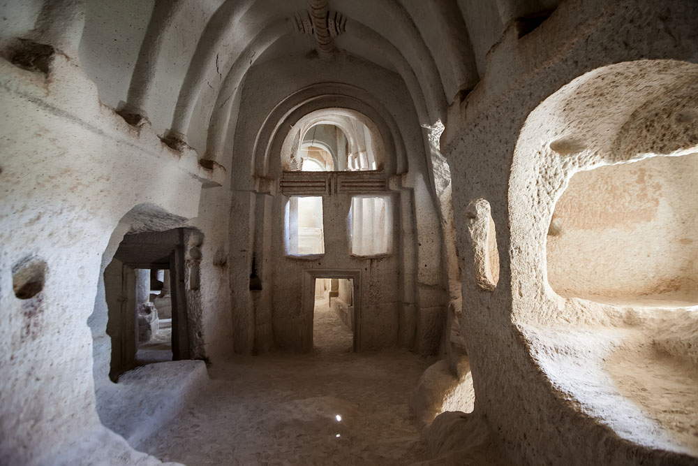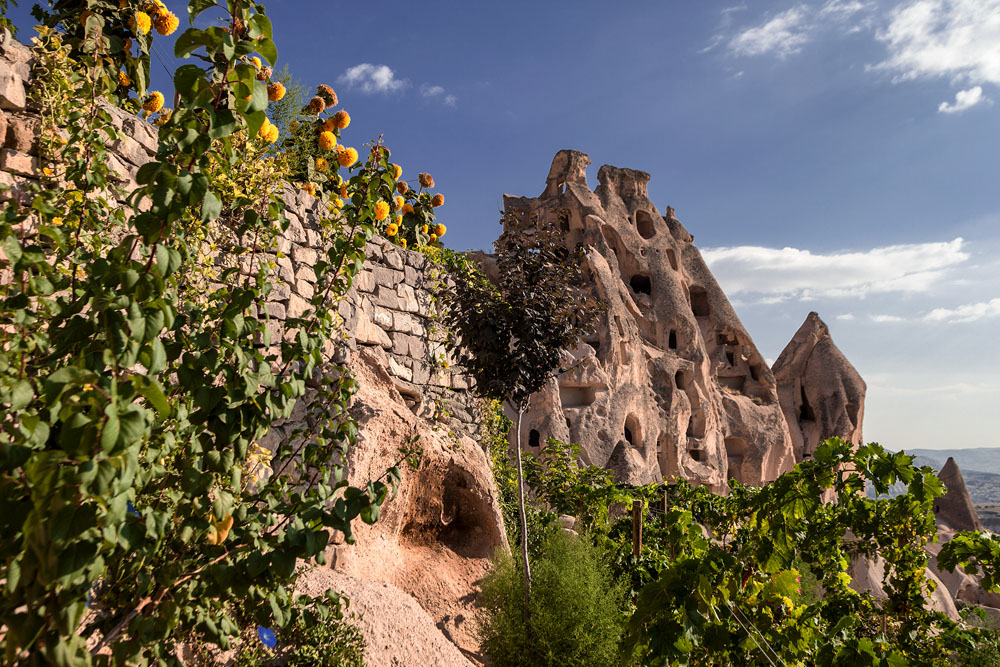 Erstens kommt es anders, zweitens als man denkt ! Eine Reise nach Kappadokien hatte ich gar nicht im Sinn. Ich saß mit zwei befreundeten Fotografen aus der Schweiz in einem kleinen Nest im indischen Kerala. Wir hatten vielleicht schon den einen oder anderen Sundowner zuviel, und die Sonne war schon längst untergegangen als ich eine folgenreiche Wette einging. Wer virtuell ein wenig durch die GeoArt-Website bummelt kann viele exotische Bilder sehen; und so wettete ich, dass ich 365 Tage lang jeden Tag ein Bild zeigen und eine kleine Geschichte dazu erzählen kann. Und was machen Schweizer da? Sie sagen: „Top die Wette gilt!“ So entstanden im Laufe eines Jahres im Internetportal Fotocommunity 365 Bildgeschichten. Diese Internetplattform ist ein Präsentationsforum für Fotografie unterschiedlichster Art und Güte. Wer mag, kann zu den Fotos einen Kommentar abgeben und ein eben solcher Kommentar zu einem meiner Bilder kam von Evelyn Kopp aus Uçhisar. Evelyn betreibt in Uçhisar das Asmali Cave House, ein stilvolles Höhlenhotel. Die Idee, die dahinter steckt ist, eine Wiederbelebung alter Traditionen um die dem Verfall preisgegebenen Höhlenhäuser der Ur-Einwohner Kappadokiens zu erhalten und mit natürlichen Baumaterialen aus der Region wieder aufzubauen. Im Asmali Cave House sind so drei geschmackvolle Wohnsuiten entstanden, in denen man sich – nach langen Wanderungen oder Ausflügen ins Umland – einfach wohl fühlen kann.