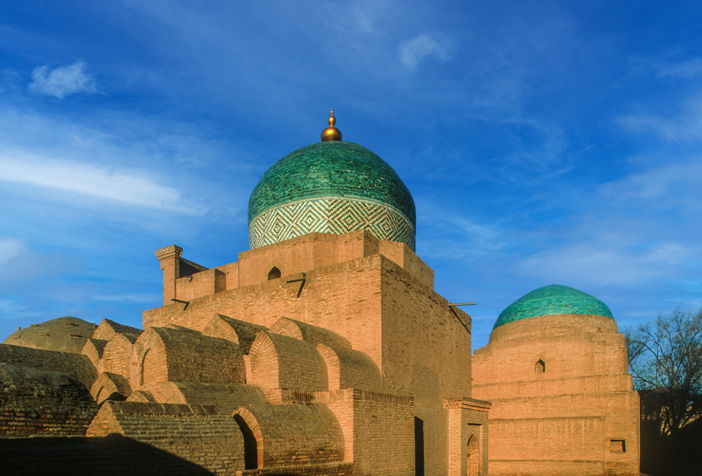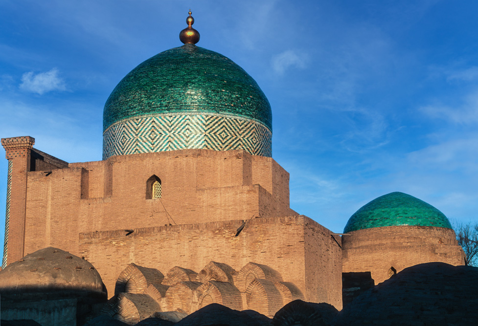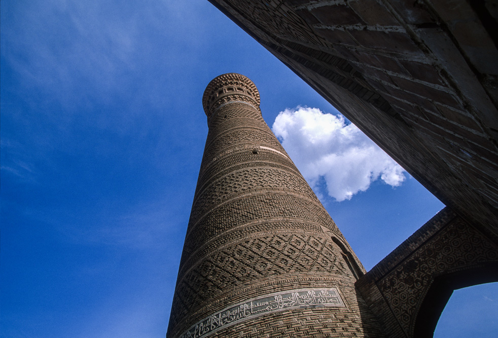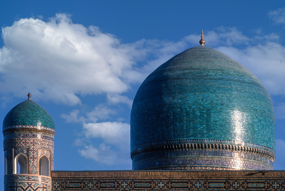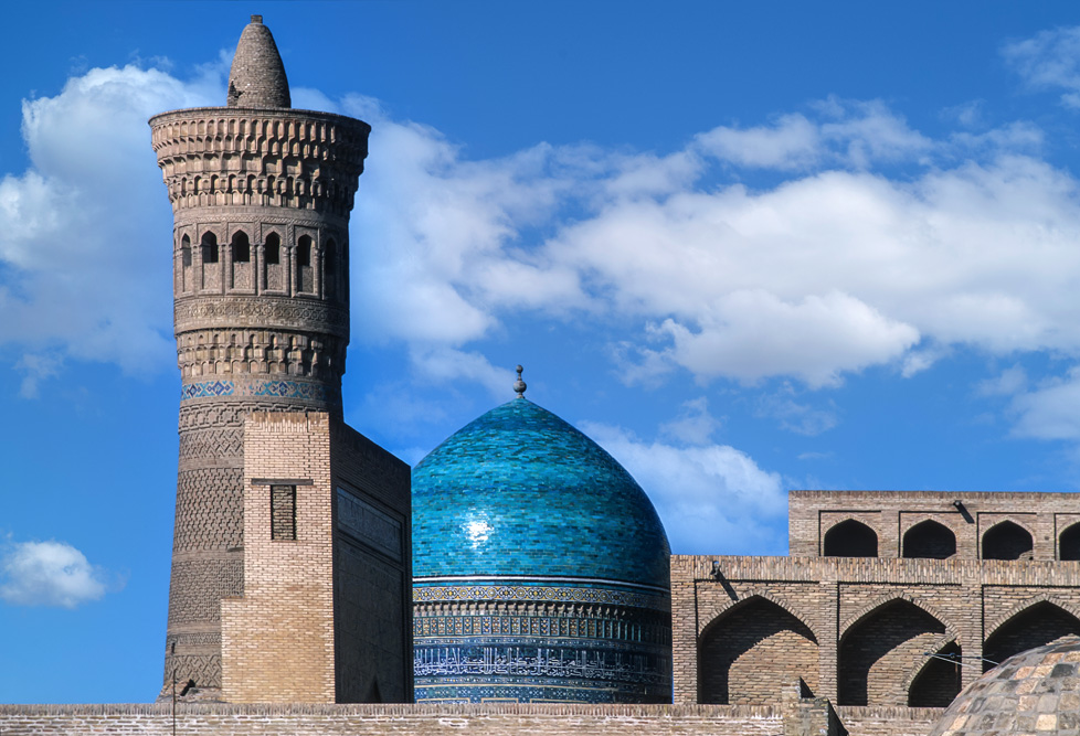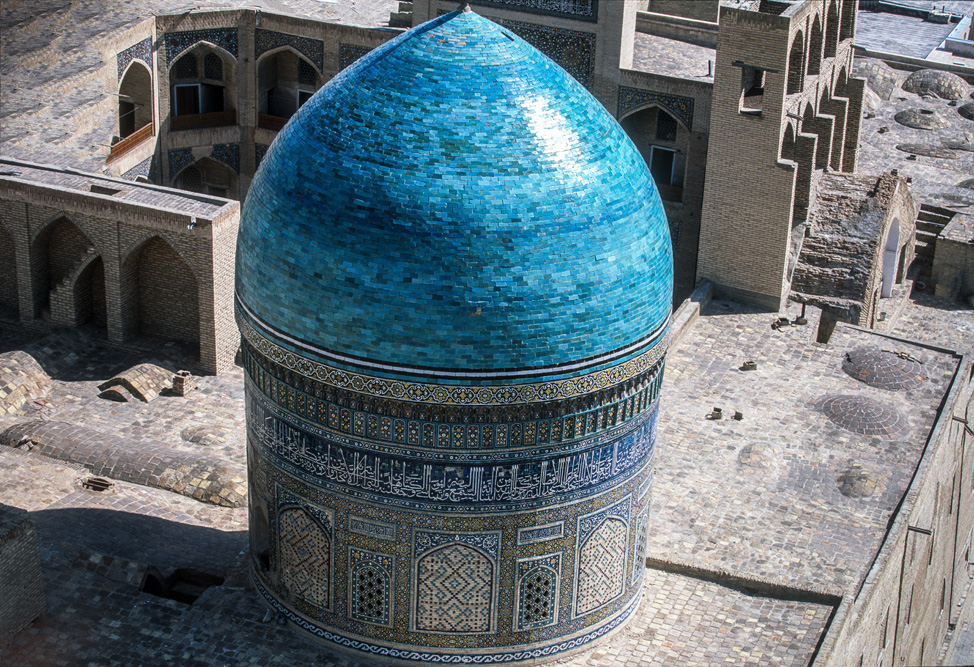 Als ich das Hotel verlasse, bin ich schon nach wenigen Metern mitten auf einem kleinen Basar. Die Händler und Handwerker sind freundlich und angenehm unaufdringlich. Das Angebot reicht von Lackmalereien über geschnitzte Koranständer, Seide, Irdenwaren bis hin zu Gewürzen und Messern, für die Buchara weltberühmt ist.Mein Ziel in der frühen Morgenstunde ist die Miri-Arab-Medrese und die Kalon Moschee. Am frühen Morgen ist es menschenleer. Die aufgehende Sonne taucht das 46 m hohe Minarett, das seit dem Jahr 1127 Wahrzeichen der Stadt ist, und die blauen Kuppeln der Medrese in ein warmes Licht. Ich verweile ganz gefangen von diesem Anblick, der mit jeder Minute, die die Sonne höher steigt, grandioser wird.