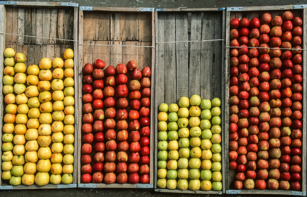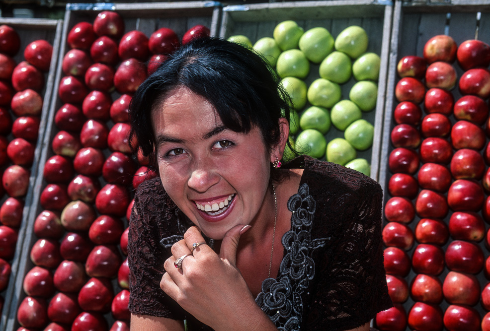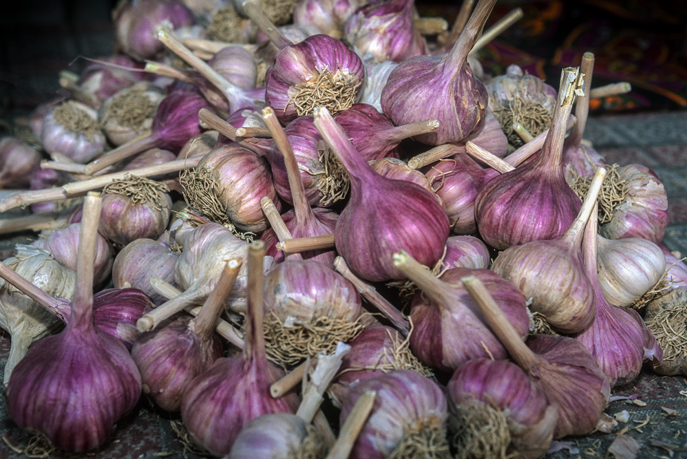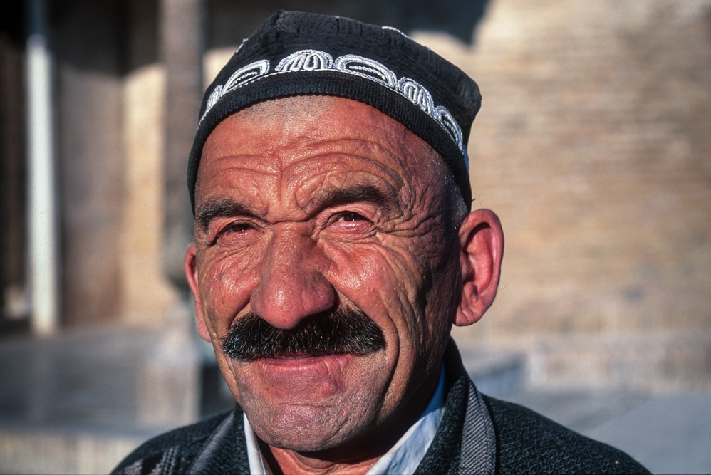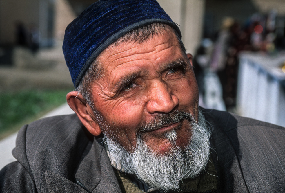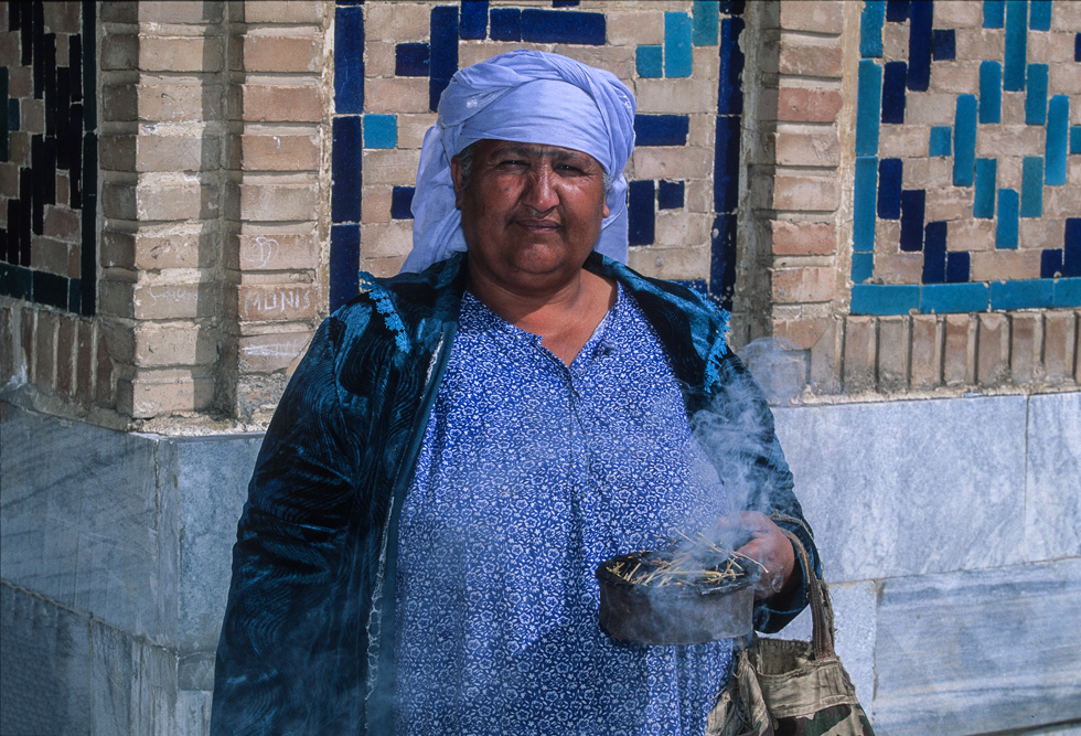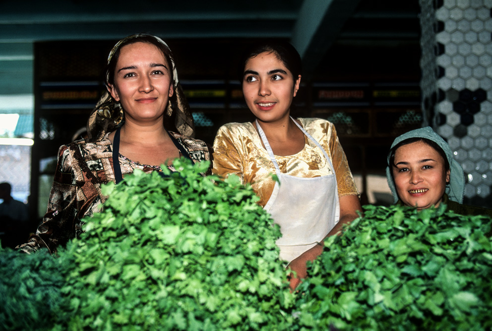 Ein orientalischer Basar ist etwas besonderes, weniger Marktplatz denn Lebensform. Die Händler haben Menschenkenntnis und Lebenserfahrung, sie taxieren dich, schätzen deine Kaufkraft ein – an ihnen hätte Sigmund Freud sein Vergnügen. Alle Wohlgerüche des Orients fluten einem entgegen, doch hier ist nicht nur der Geruchssinn gefragt, hier gilt es mit allen Sinnen zu genießen. Auf dem Gewürzbasar stehen die Händler und lassen Sesamsamen durch die Finger rieseln, hier gibt es Pfeffer, Safran, Muskatpulver, Nelken und Sternanis, Rosinen und getrocknete Aprikosen. Das ist morgenländische Exotik im Überfluss. Weiter hinten in den kühleren Ecken des Basars werden Käsekugeln eingesalzen. Wohlgenährte Frauen thronen hinter Gemüseständen. Es werden Radieschen geputzt, Möhren in Streifen geschnitten und in Knoblauchsud eingelegt und Granatäpfel aufgebrochen. Es tut mir immer leid, dass man als Fotograf ein bisschen ein Schmarotzer ist. Man will die bunten Bilder, kann aber nicht jedem etwas abkaufen. Bei den Händlern von Samarkand habe ich aber kein schlechtes Gewissen, sie sind freundlich und ich bekomme sogar ein frisches, knuspriges Fladenbrot geschenkt. So gestärkt, mache ich mich auf zur letzten Etappe in Samarkand.
