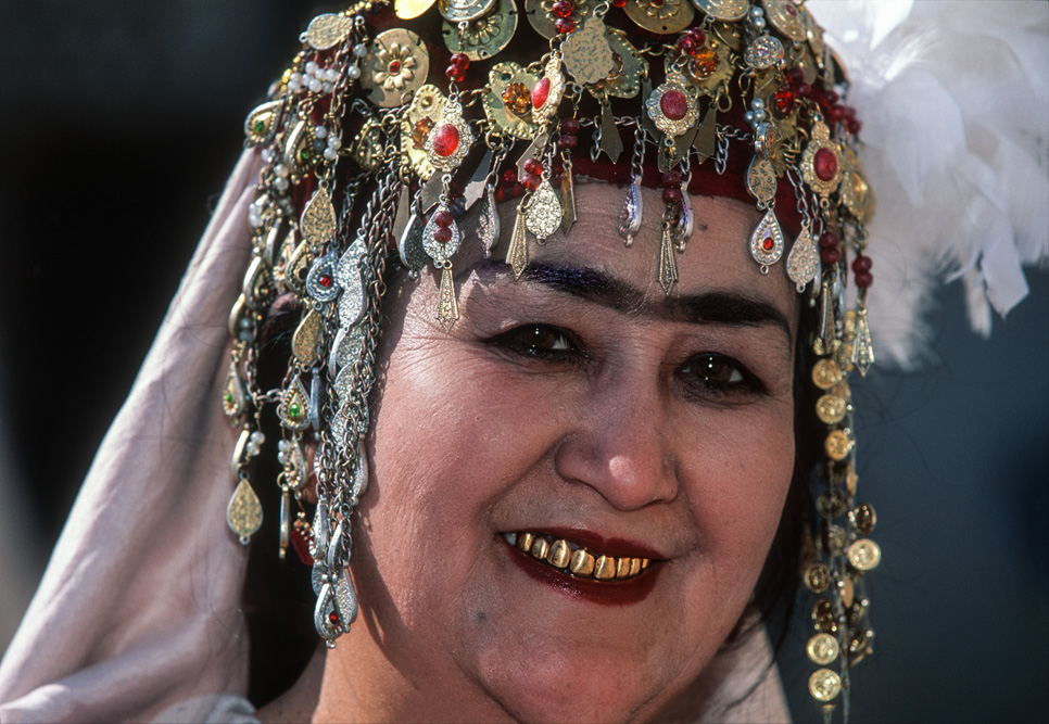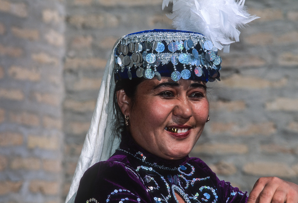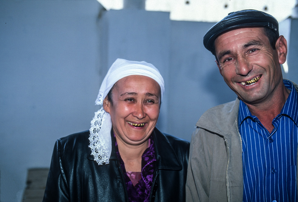 Gegen 10 Uhr öffnet nicht weit von der Kalon Moschee der Toqi-Saragagon. Der Basar der Juweliere. In einem großen Innenhof sitzen hunderte Händlerinnen und verkaufen Ringe, Ohrringe, Armbänder und jede Art von Geschmeide. Foto erlaubt fragen meine Augen eine Händlerin ? Kopfnickend bejaht sie und ein Lächeln bringt Ihre Zähne zum Vorschein und auch diese sind aus purem Gold. Offenbar gab es eine Zeit, in welcher diese Art der „Gebiss-Sanierung“ sehr beliebt war, denn diese Art des Zahnersatzes ist in Usbekistan sehr verbreitet.