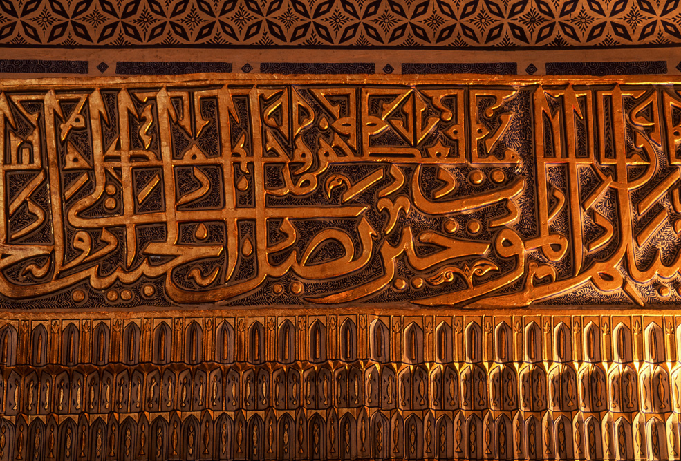 Der Seiteneingang der Moschee ist mit einer schweren, geschnitzten Tür verschlossen. Der Polizist der hier Wache schiebt, drückt die schweren Türflügel auseinander. Wer durch die Tür tritt, kommt in eine andere Welt, von einem Ort der Stille tritt man heraus und steht nach wenigen Schritten unvermittelt im Trubel des Basars.