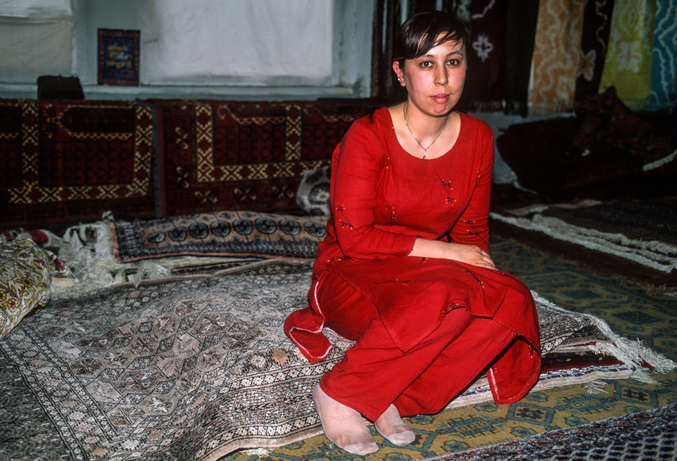 Am Nachmittag stehe ich vor dem Gebäude der Samarkand Bukhara Silk Carpets Corp. in der Hojom Straße. Auf Besucher ist man hier eingerichtet. Fotograf aus Germanii ? No Problem.In großen, lichten Räumen sitzen junge Frauen – man legt Wert auf die Feststellung, das nichts mit Kinderarbeit hergestellt wird – und knüpfen Teppiche in den traditionellen zentralasiatischen Mustern.